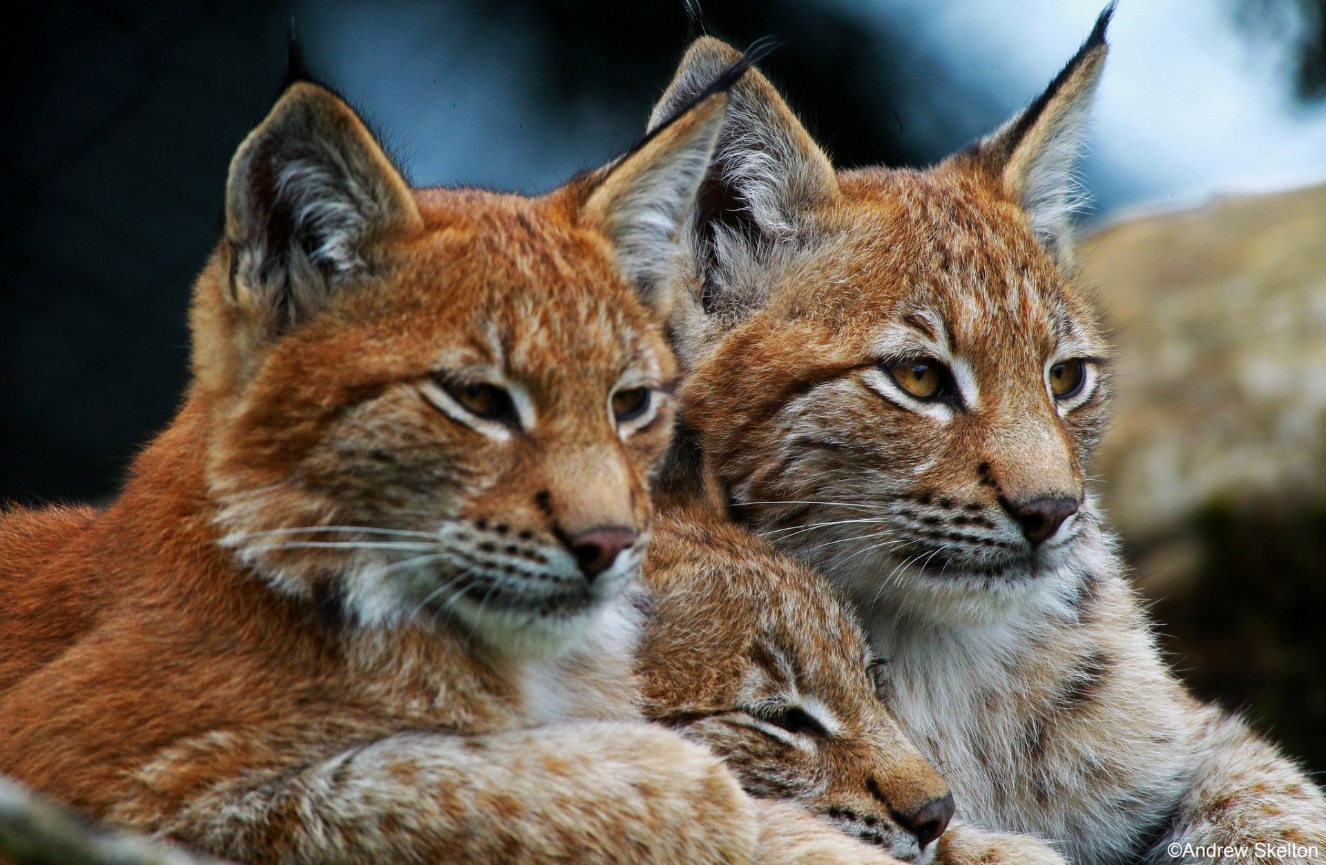 Trzy dzikie rysie odpoczywają
