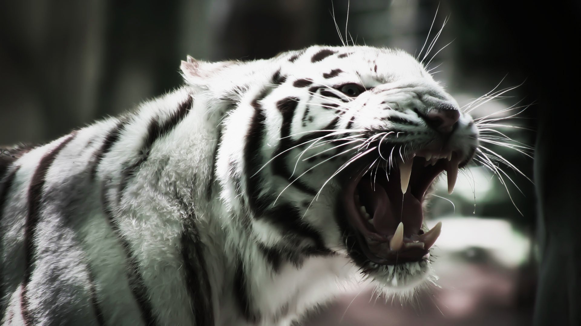 Tygrys ze złym spojrzeniem patrzy w kamerę