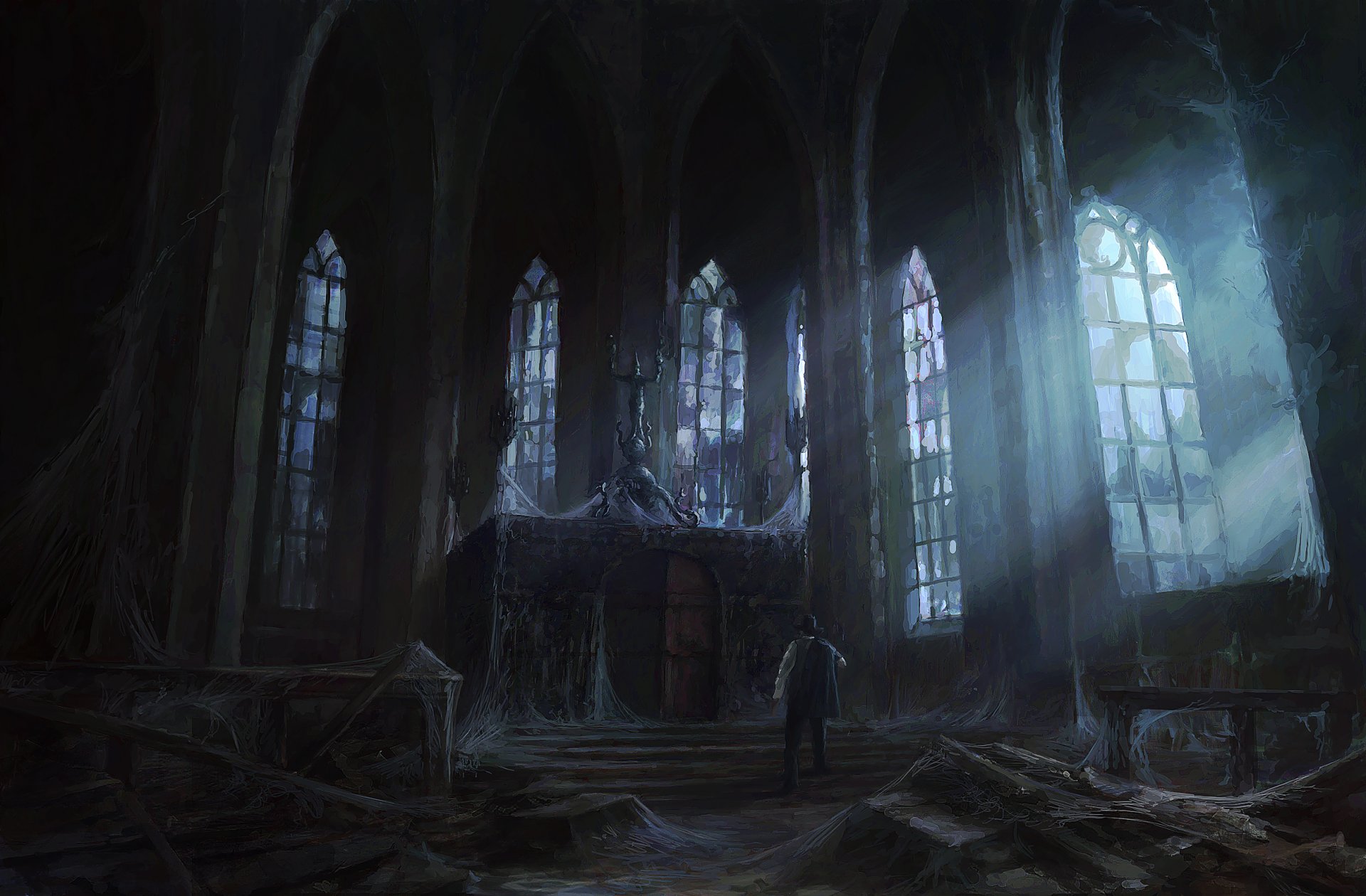 Sztuka, fantastyka. Zniszczone miasto. Demon