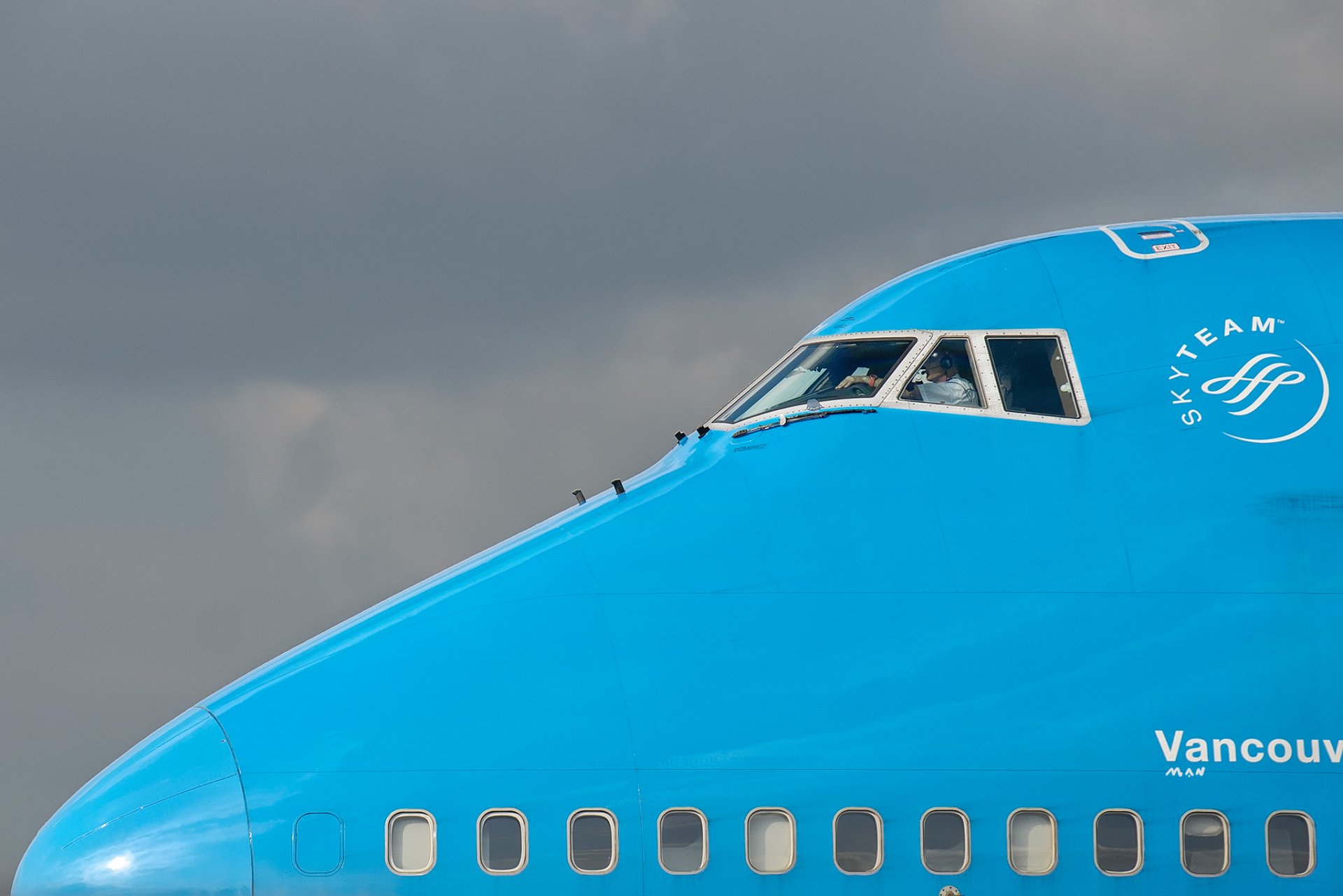 Z niebieskiego samolotu vidka kabina pilota