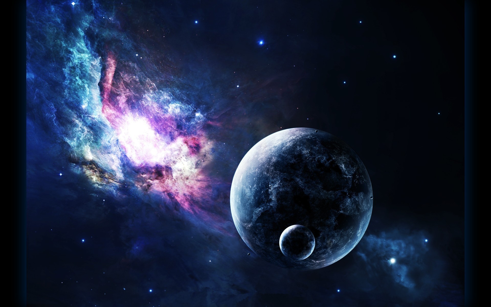 Planety w kosmosie w niebiesko-czerwonych odcieniachPlanety w kosmosie w niebiesko-czerwonych odcieniach
