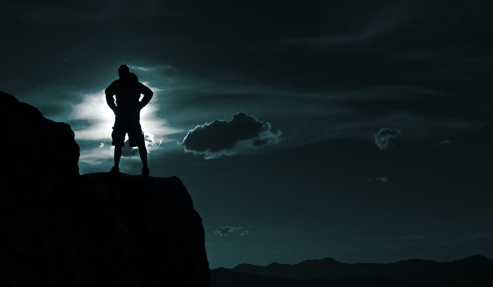 Nocne niebo i człowiek na półce góry