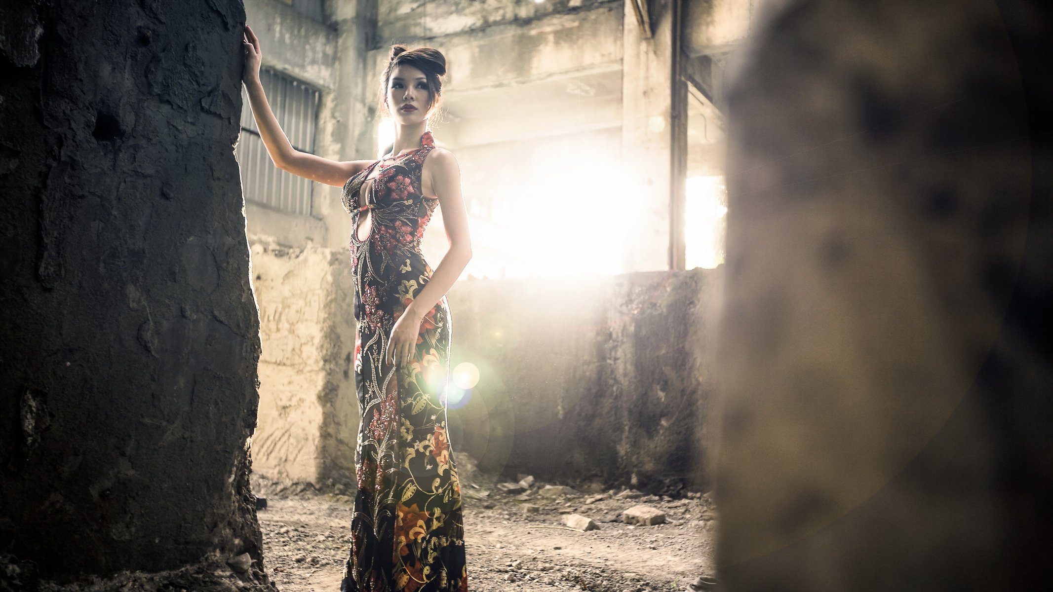 Słodka blondynka w czarnym staniku i białej bluzce siedzi na podłodze w rogu pokojuSłodka blondynka w czarnym staniku i białej bluzce siedzi na podłodze w rogu pokoju