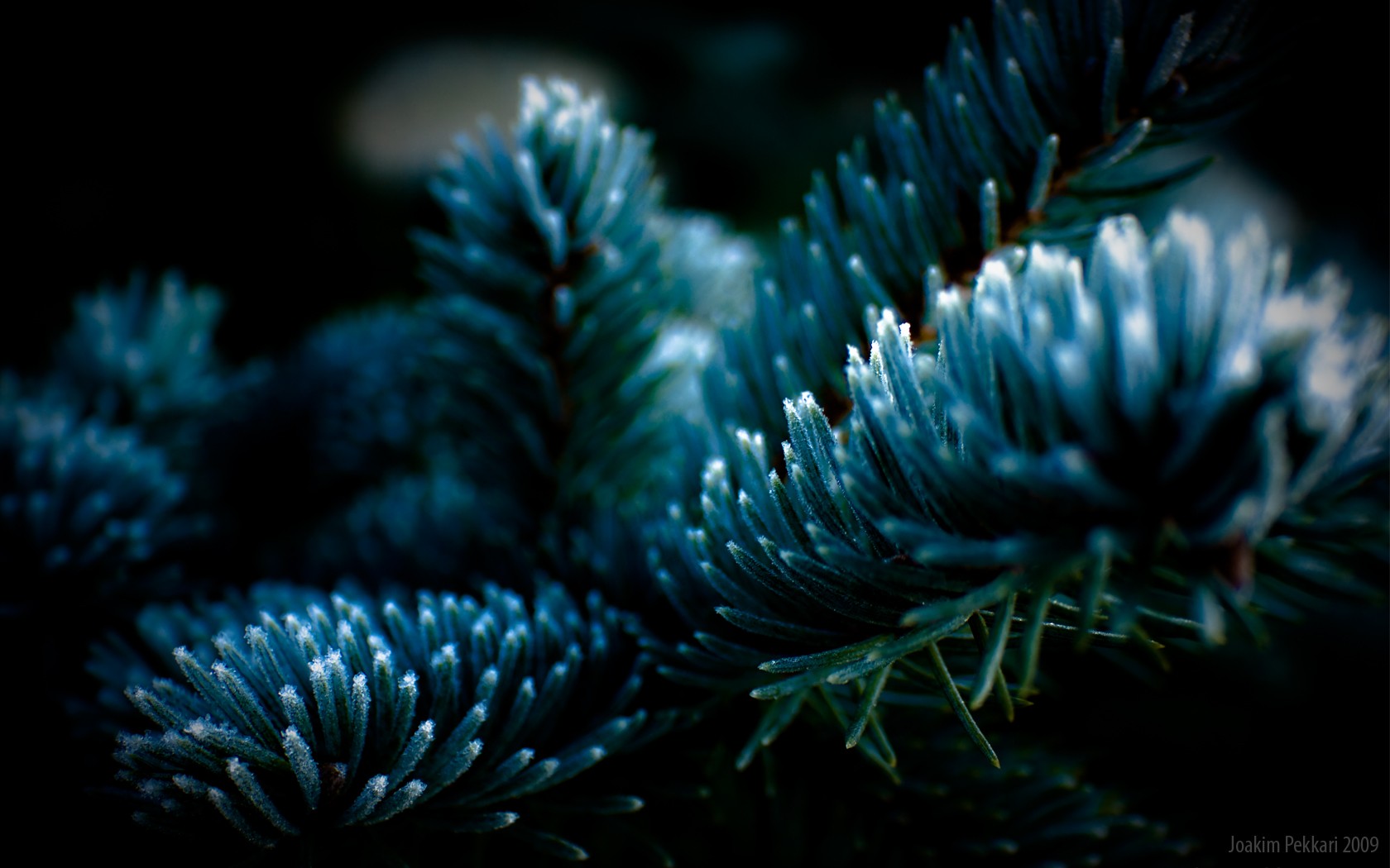 Drzewa pokryte śniegiem zimą, zdjęte od dołu