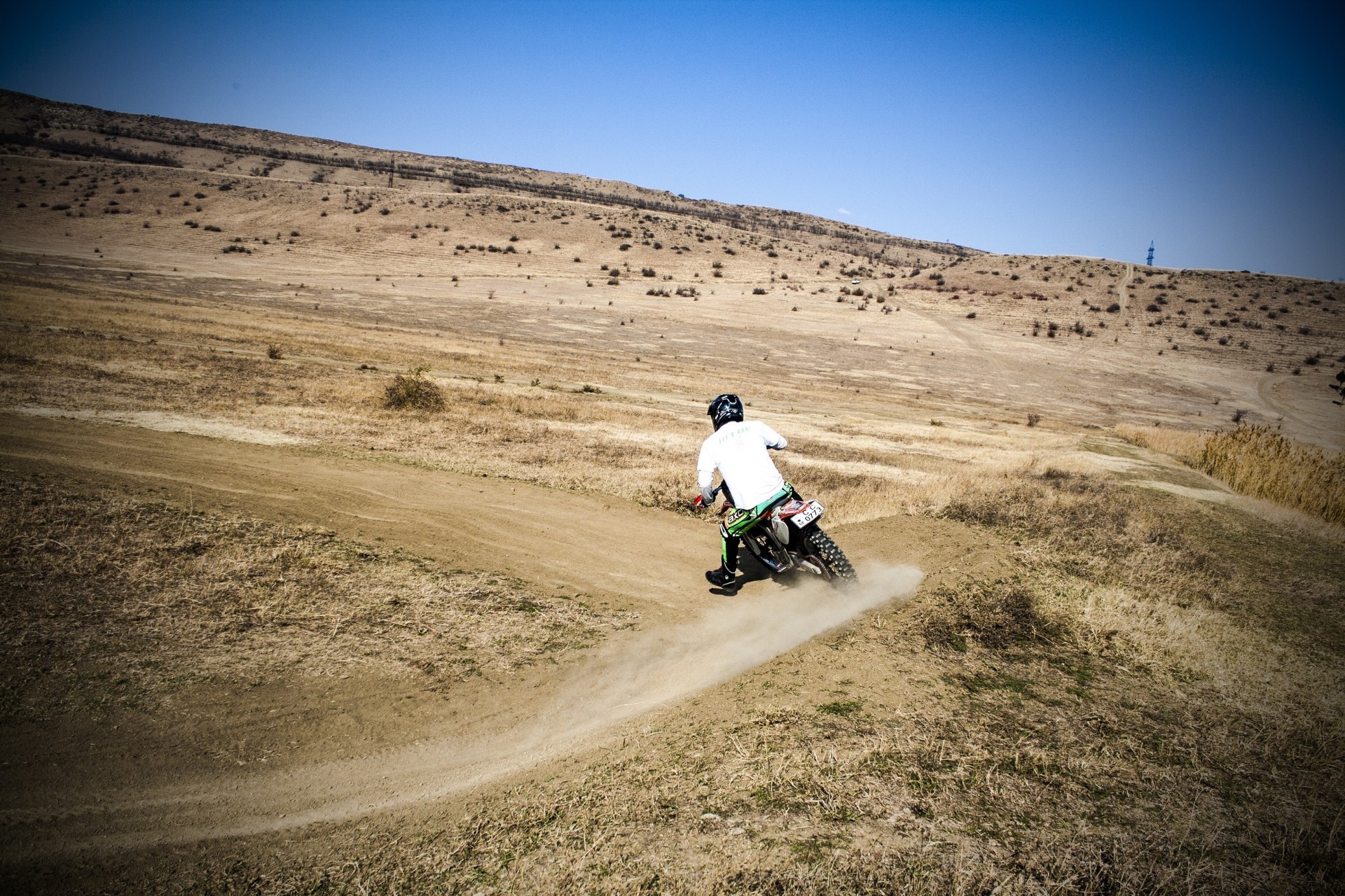 Motocyklista na motocyklu pędzi przez pola i lasy na pewno do swojej pani z sąsiedniej wsi
