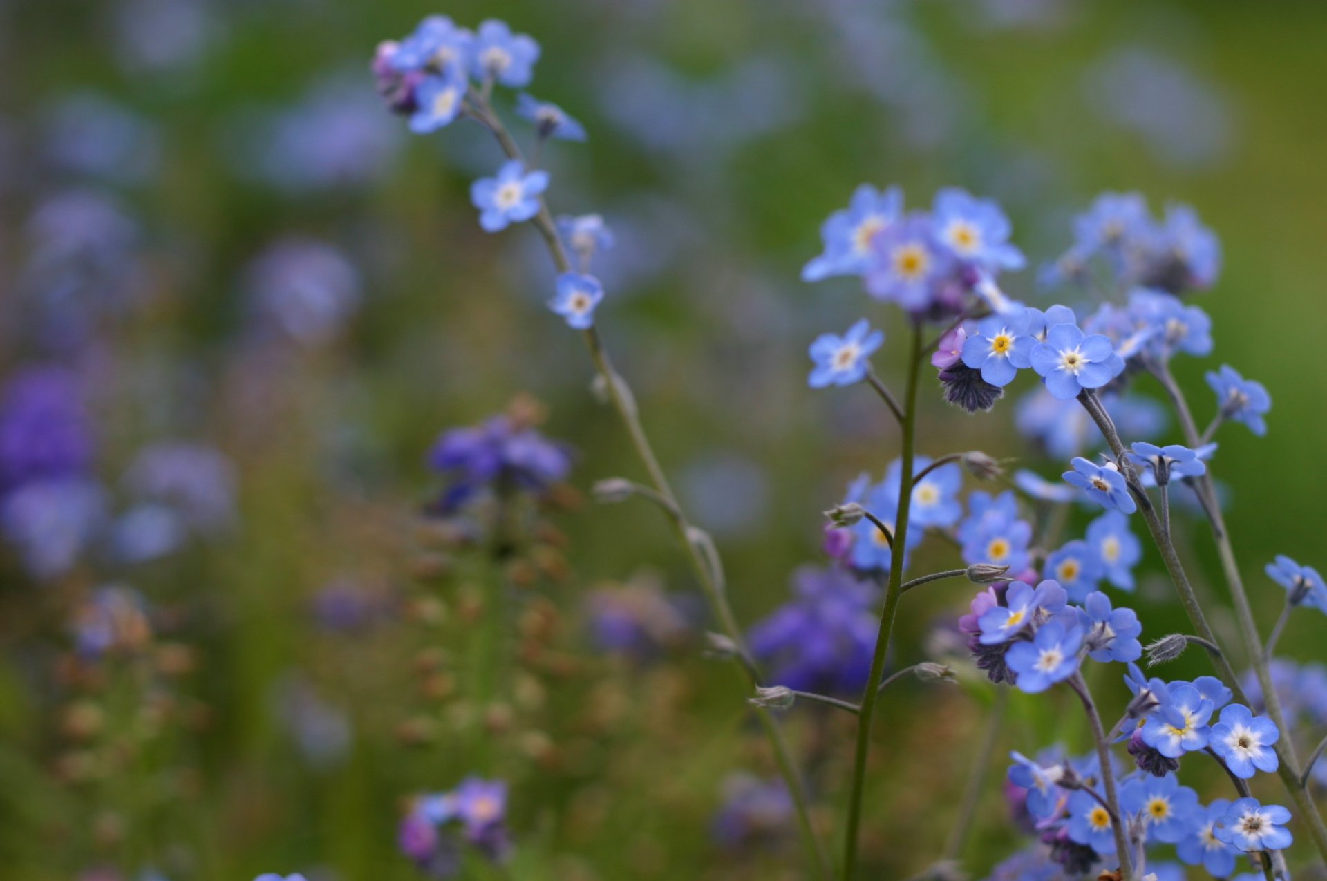 Rozmyte zdjęcie z kwiatami Niezapominajek