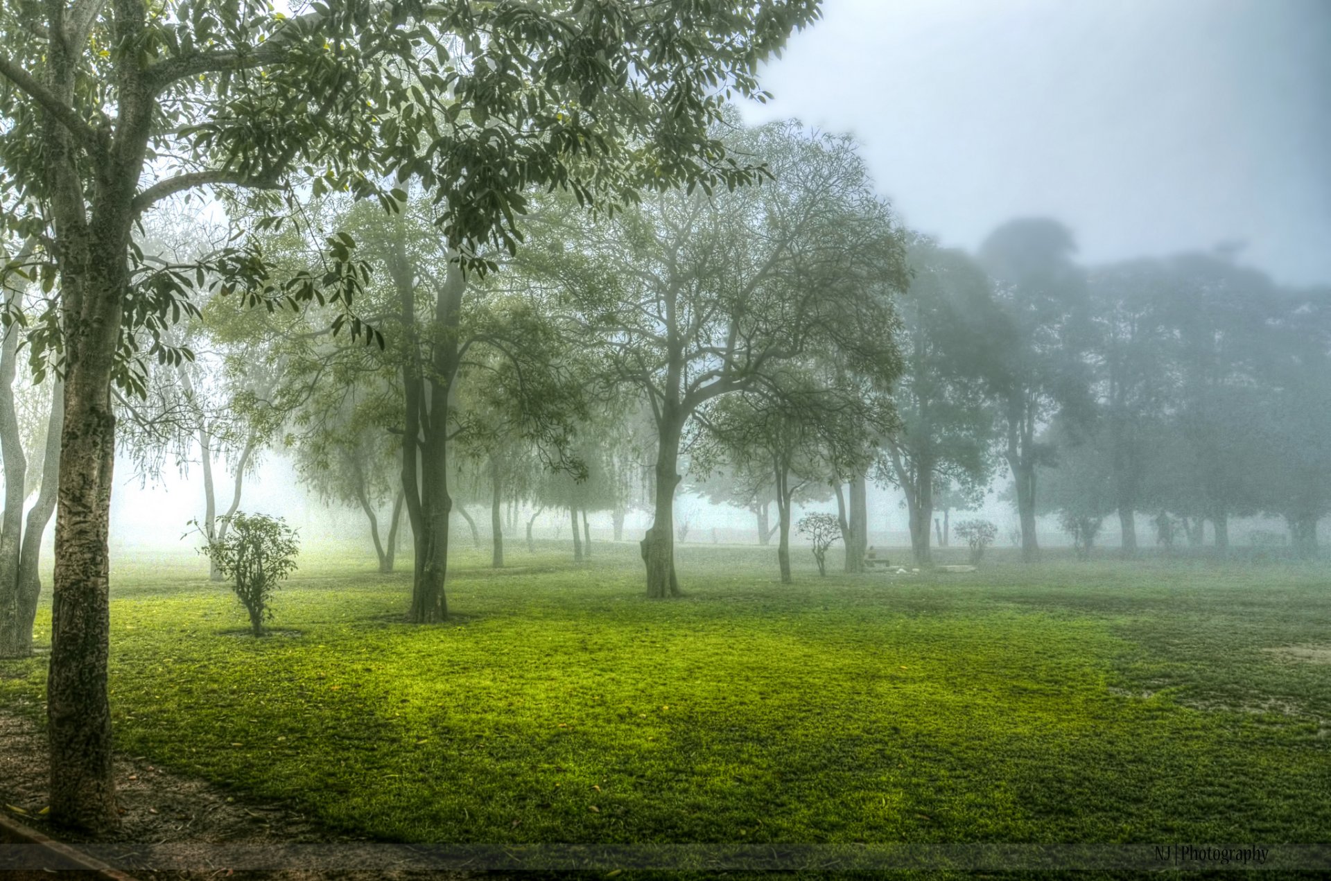 Pole z kłosami i samotnymi drzewami stojącymi na tle pięknego czystego błękitnego nieba z niezrozumiałym blaskiem