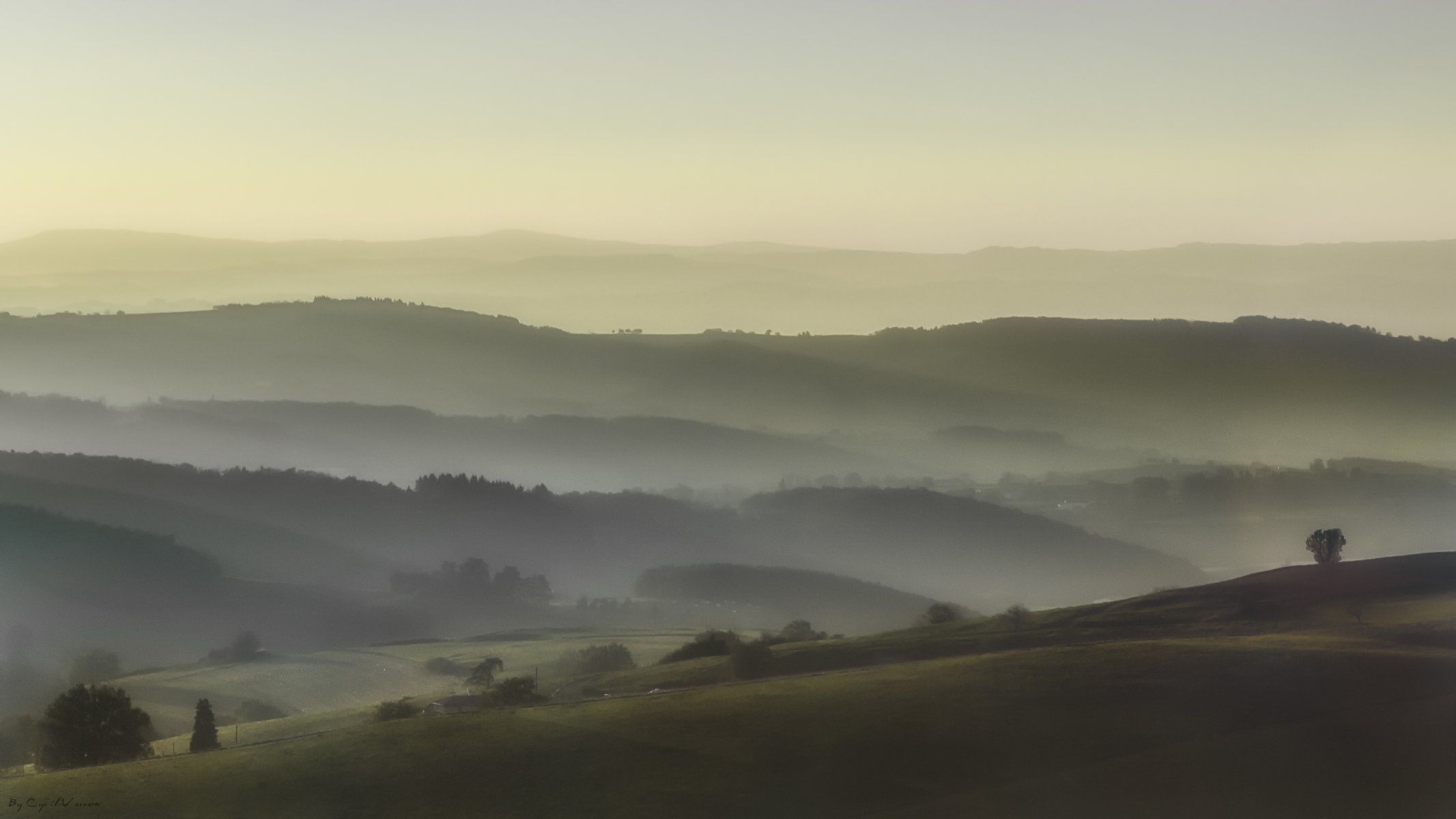 Mglista jesień w lesie. Nagie drzewa jesienią