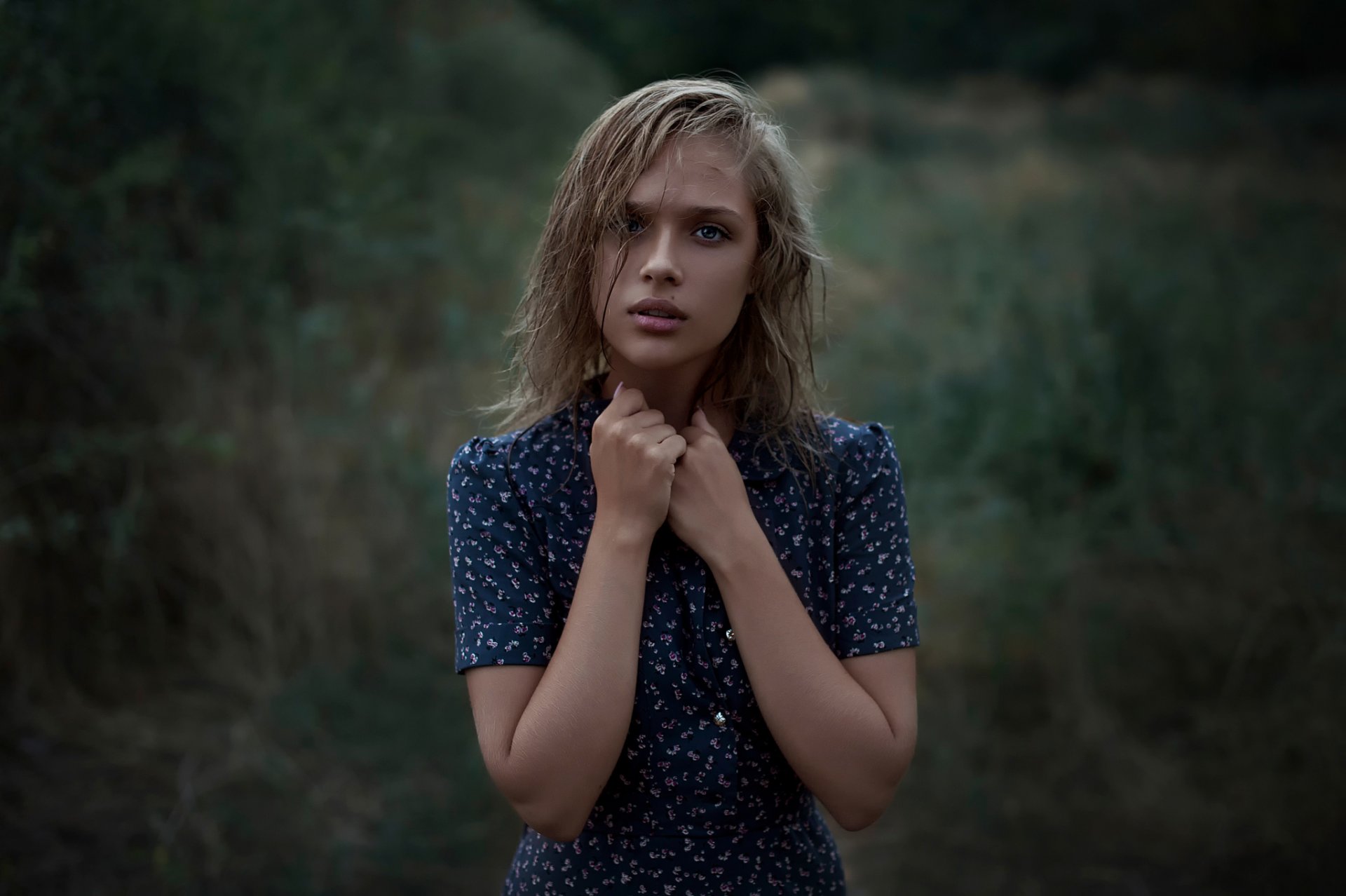 Portret dziewczyny z czerwonymi ustami z czaszką zwierzęcia na głowie