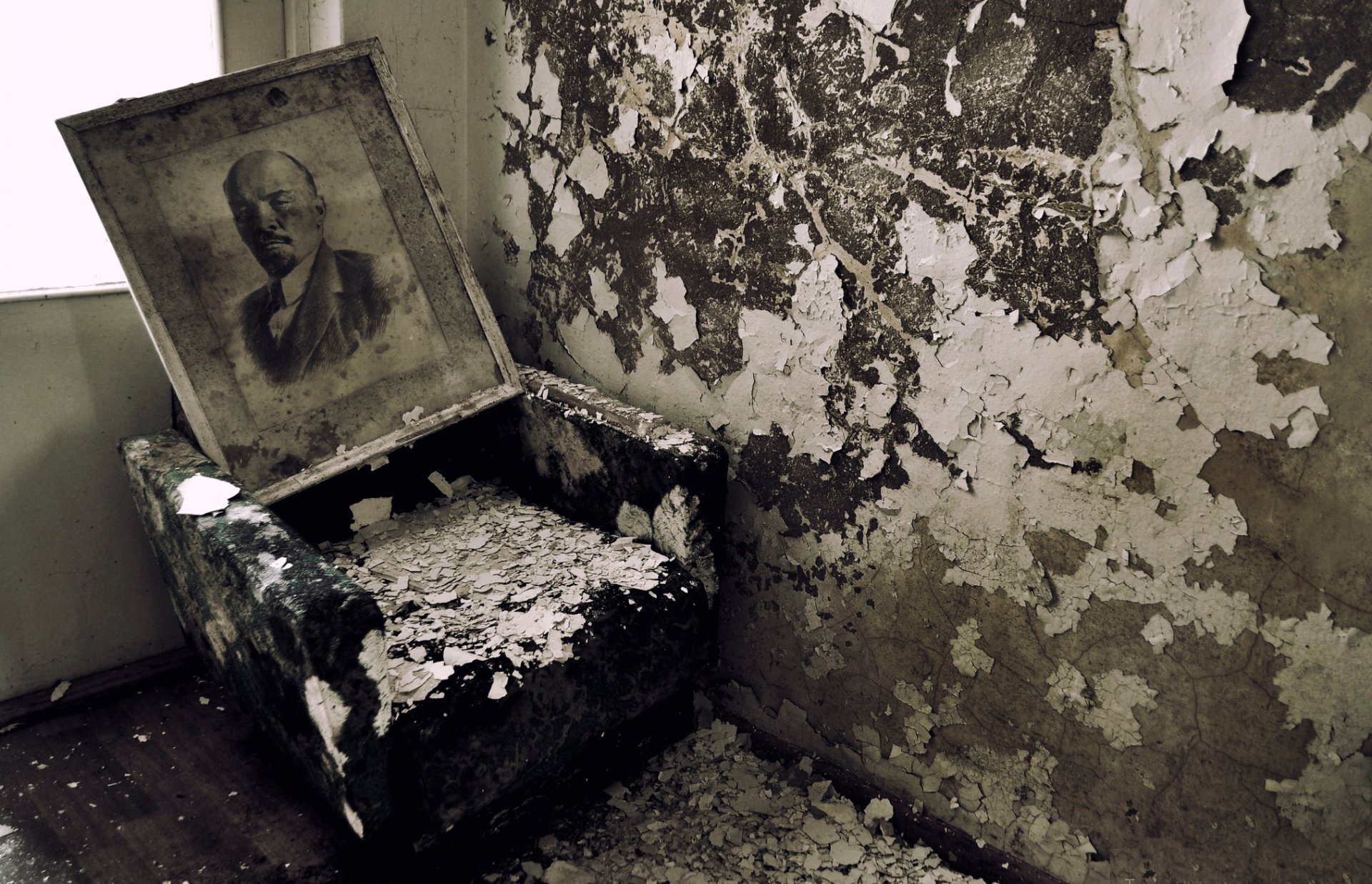Stary portret Lenina w opuszczonym domu
