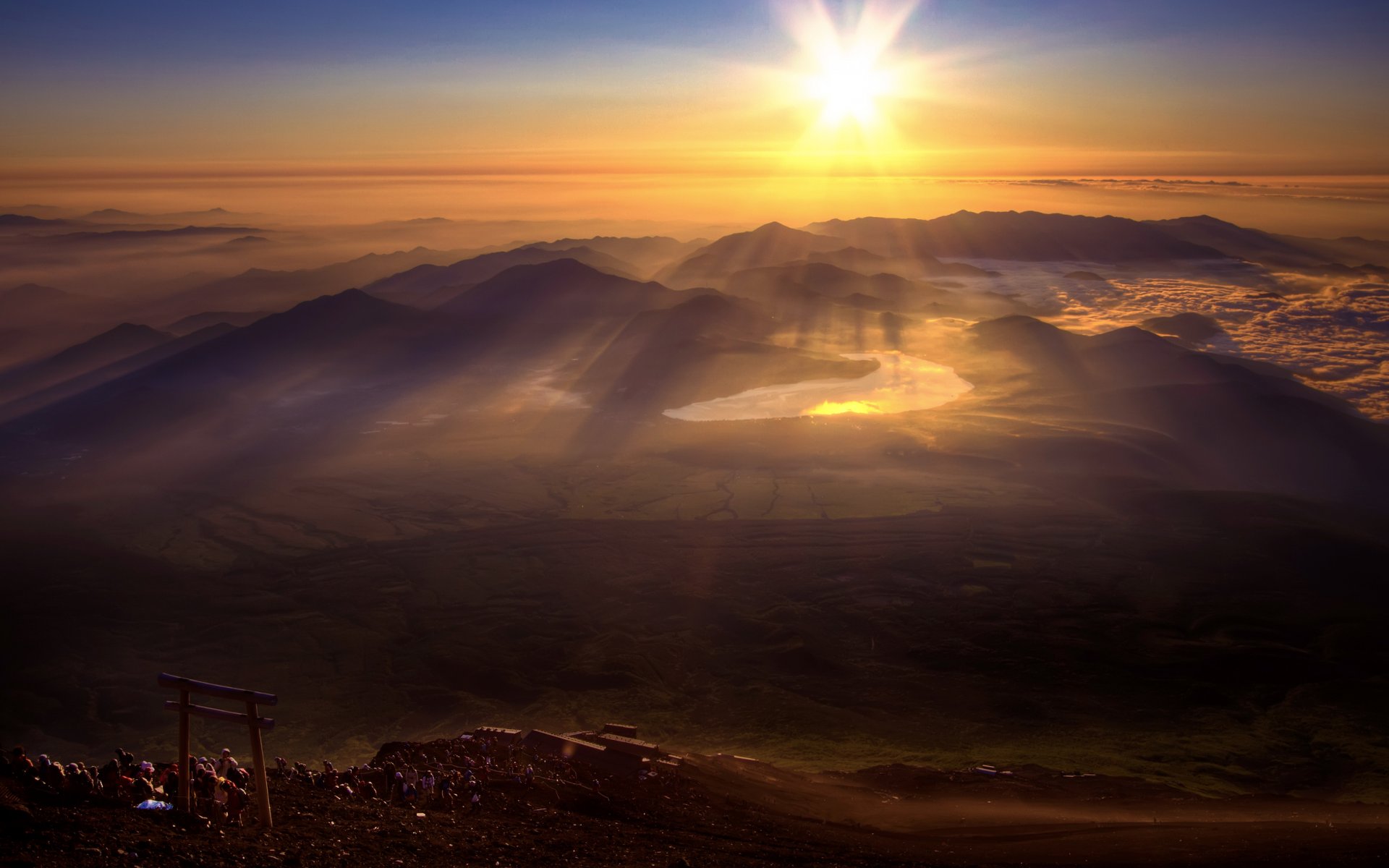 Pomarańczowe słońce świeci przez przezroczyste powietrze