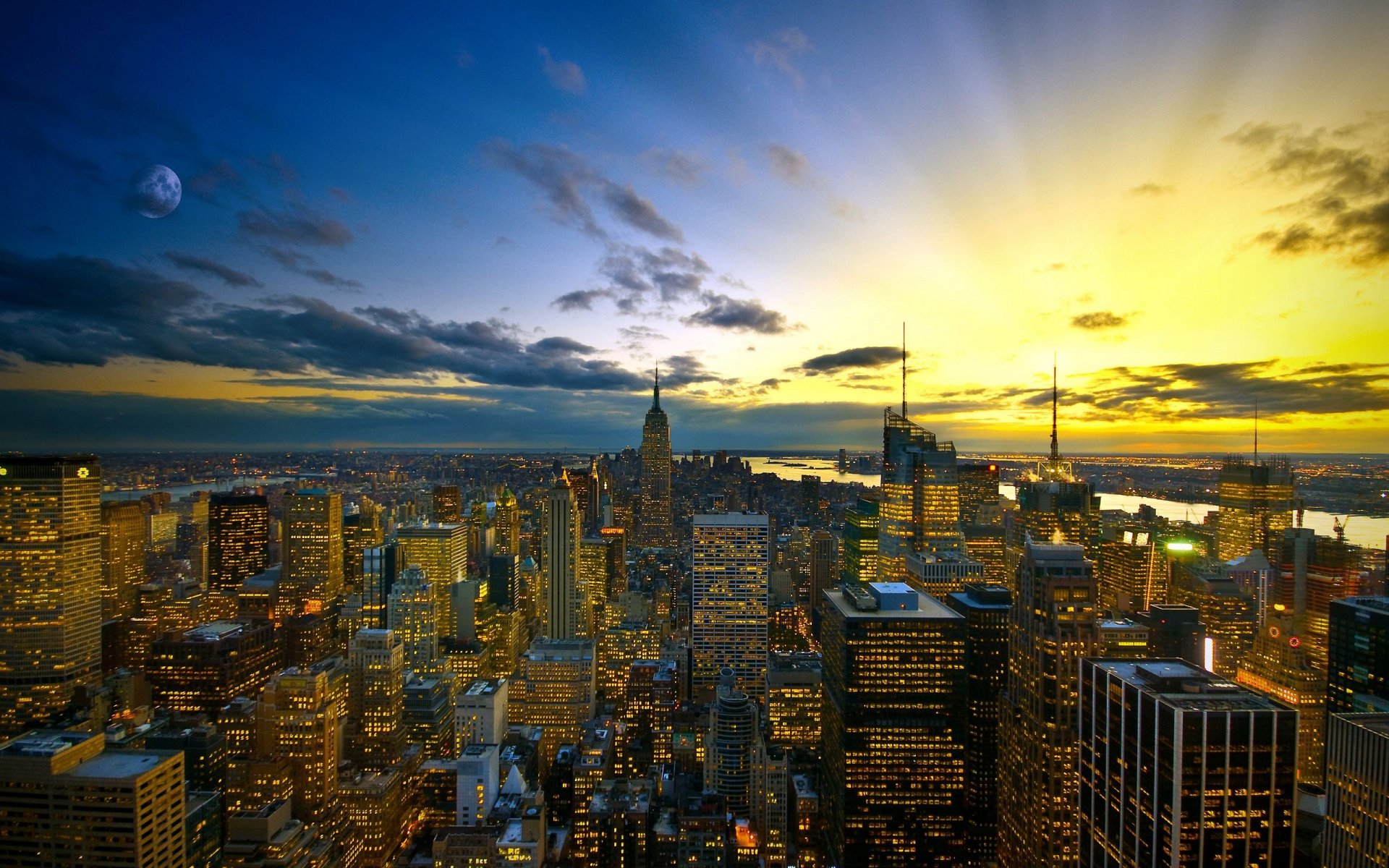 Wielka Błyskawica rozpościera się nad wieczornym miastem