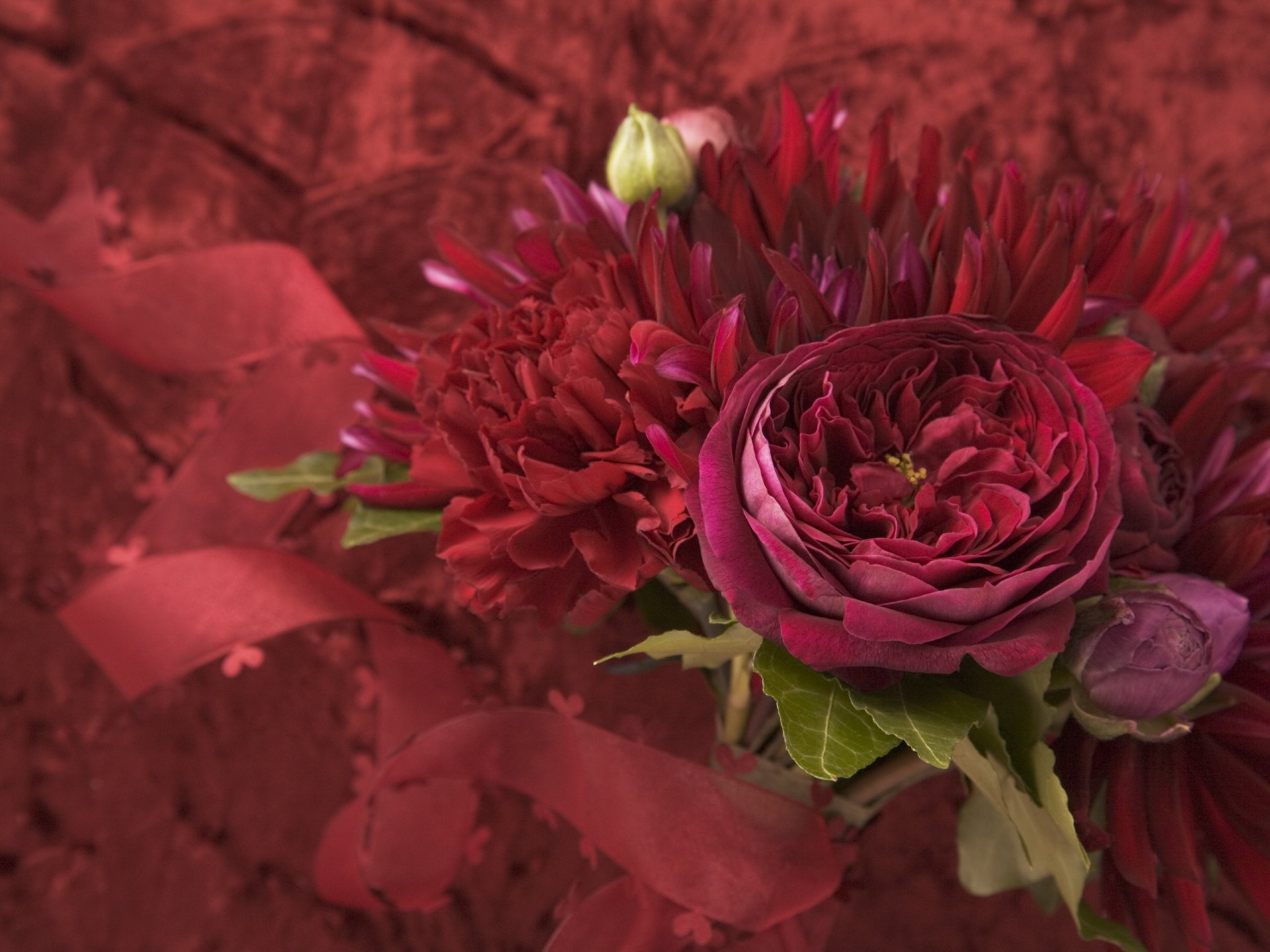 Czerwone kwiaty na gałęzi w rozdzielczości makro