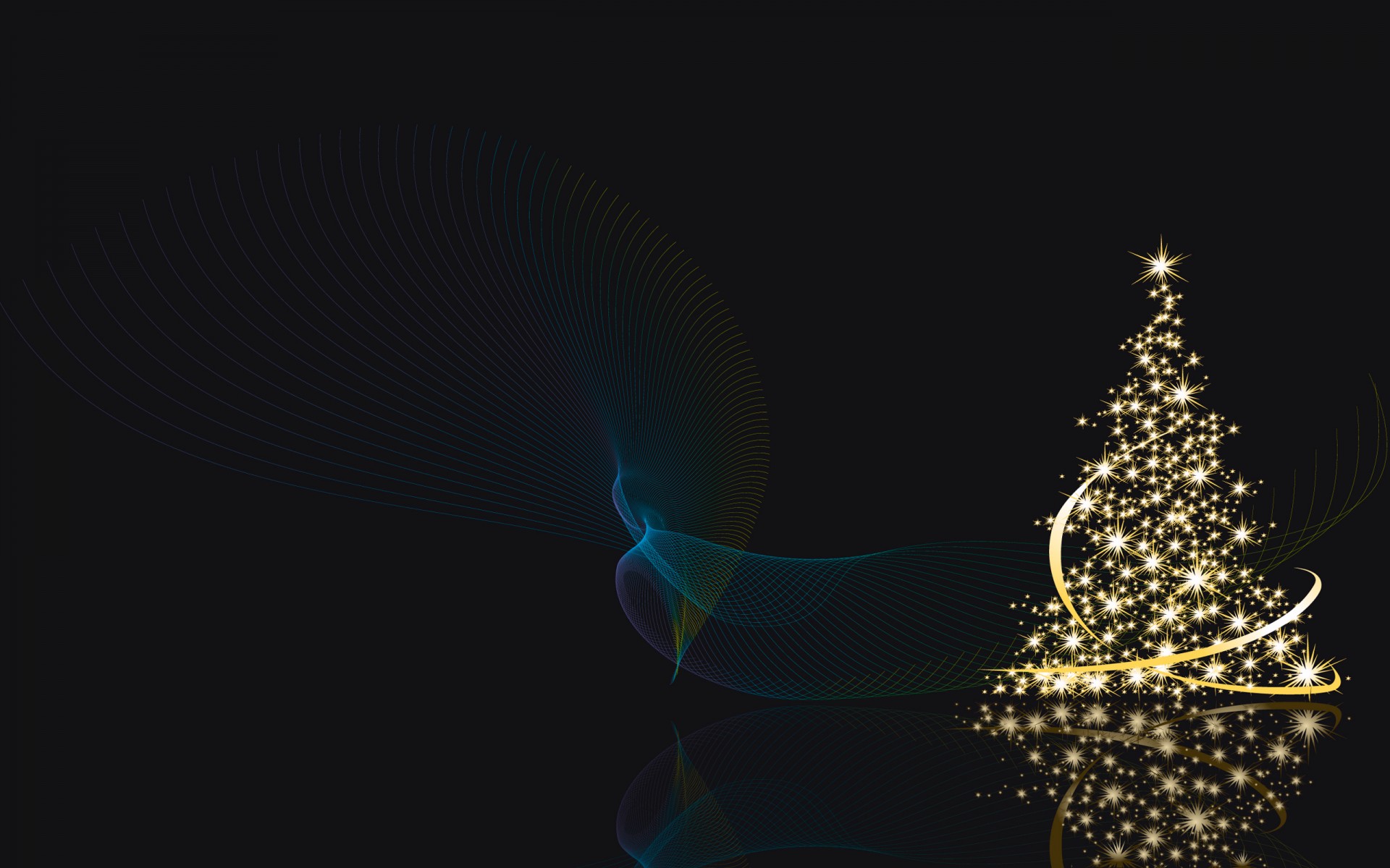 Choinka ze światłami z gwiazdą na ciemnym tle z refleksami