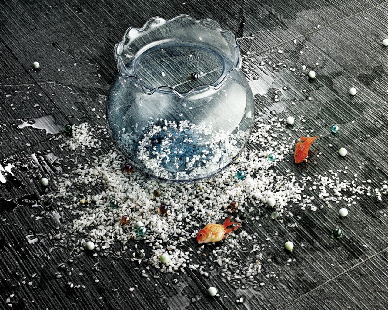 Otwarte okno, dziewczyna z różnymi oczami rana na ramieniu krew