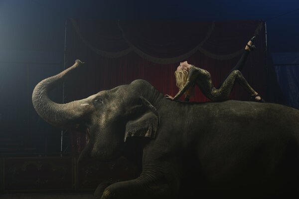 Gimnastyczka na słoniu wykonuje ćwiczenia