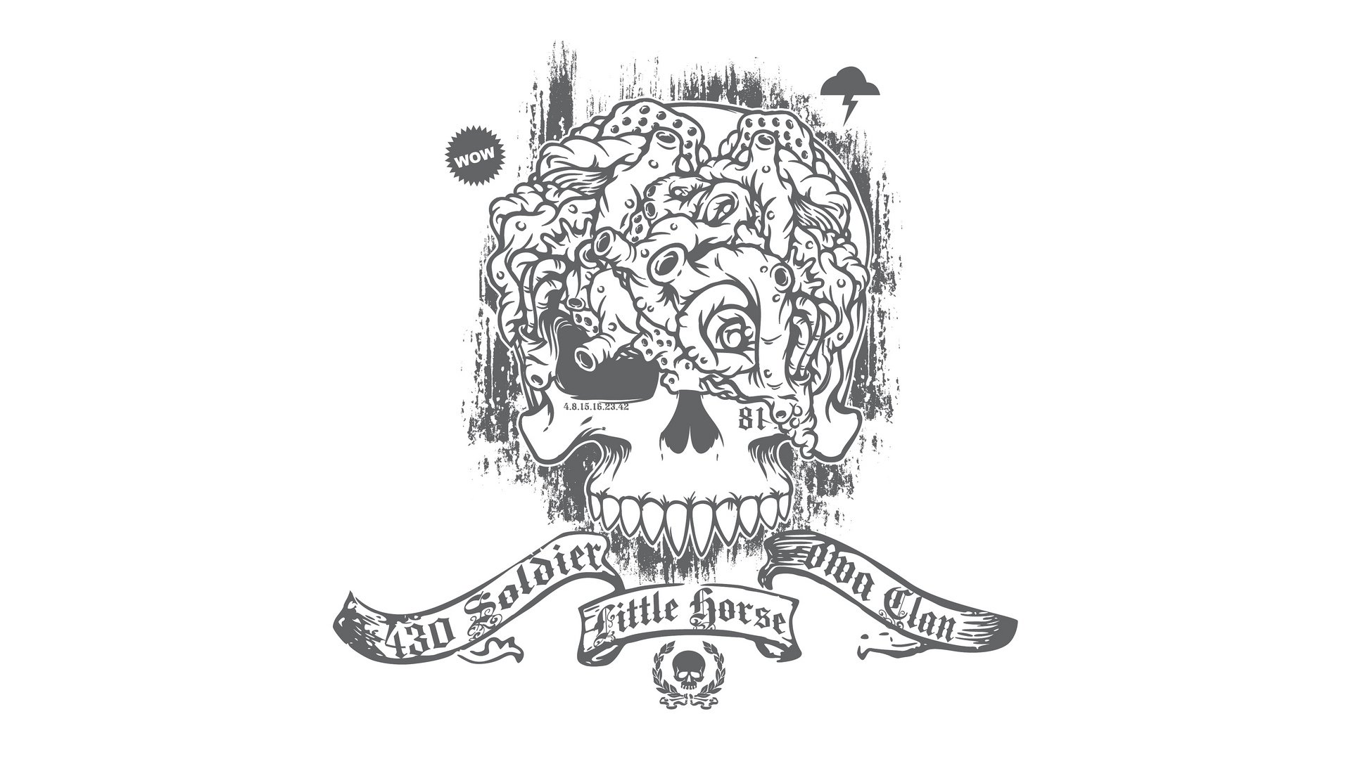 Czaszka z kośćmi w kształcie ugryzionego jabłka