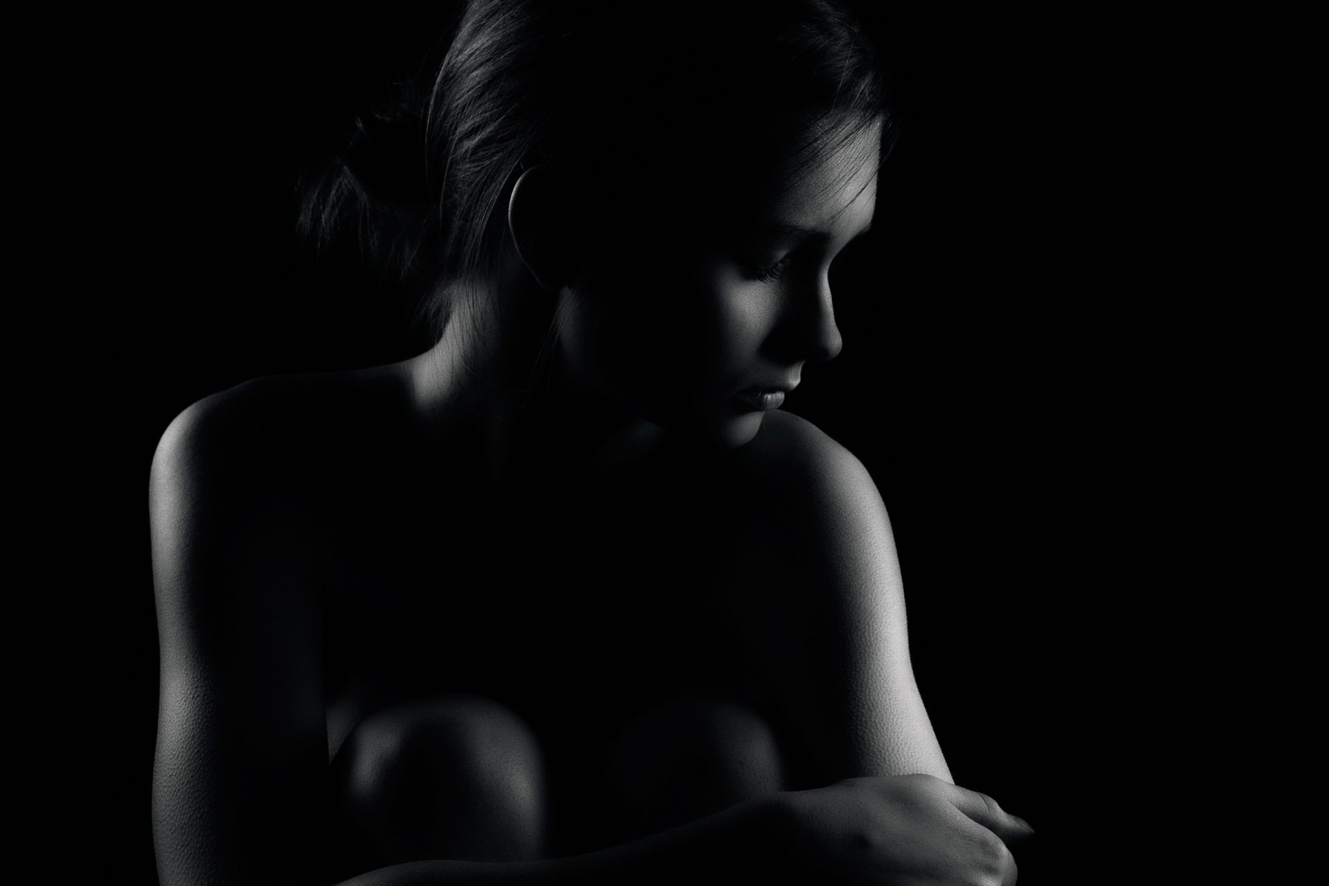 Smutna dziewczyna w łańcuchach własnego bólu i frustracji
