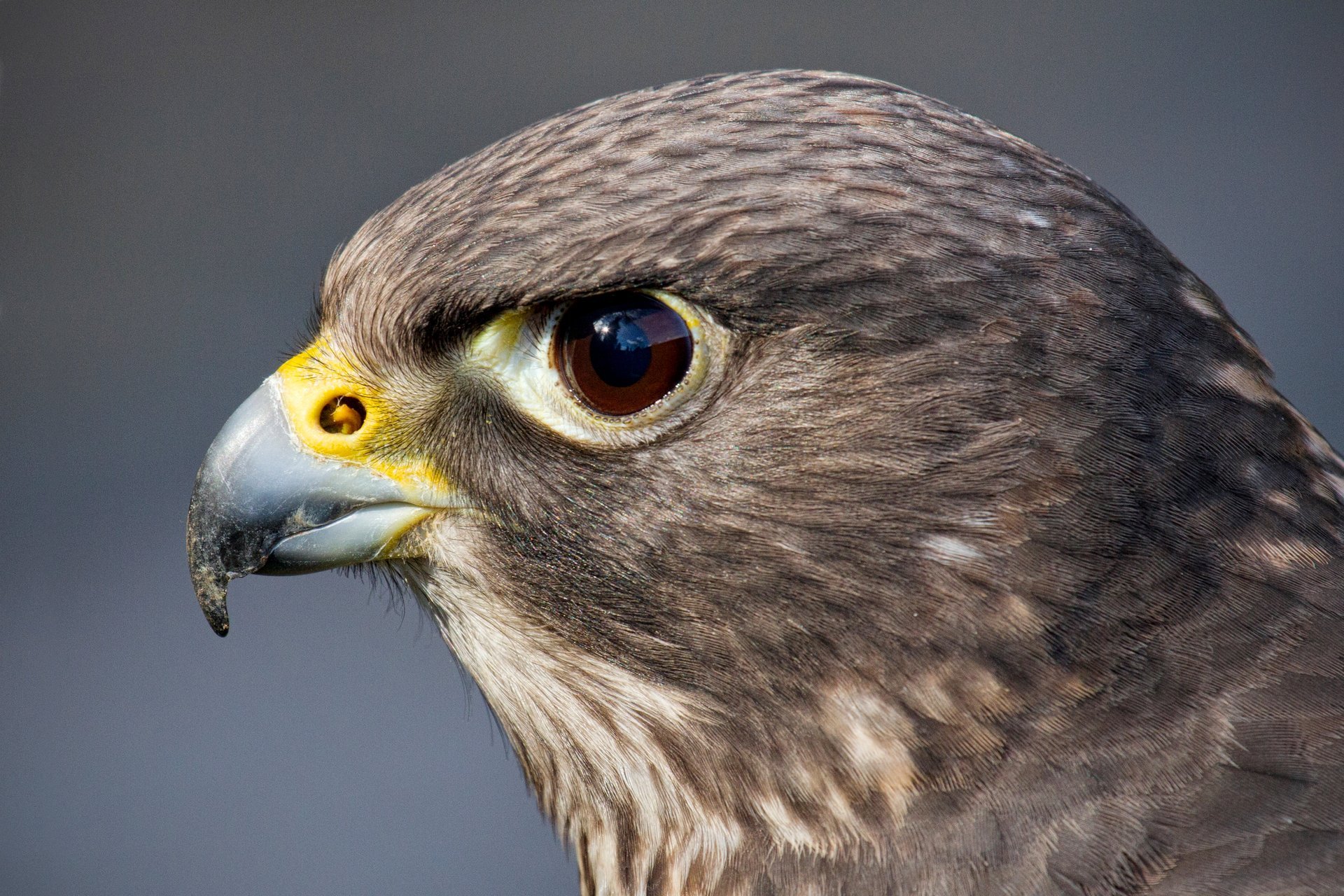 Ptak drapieżny Sokół z profilu