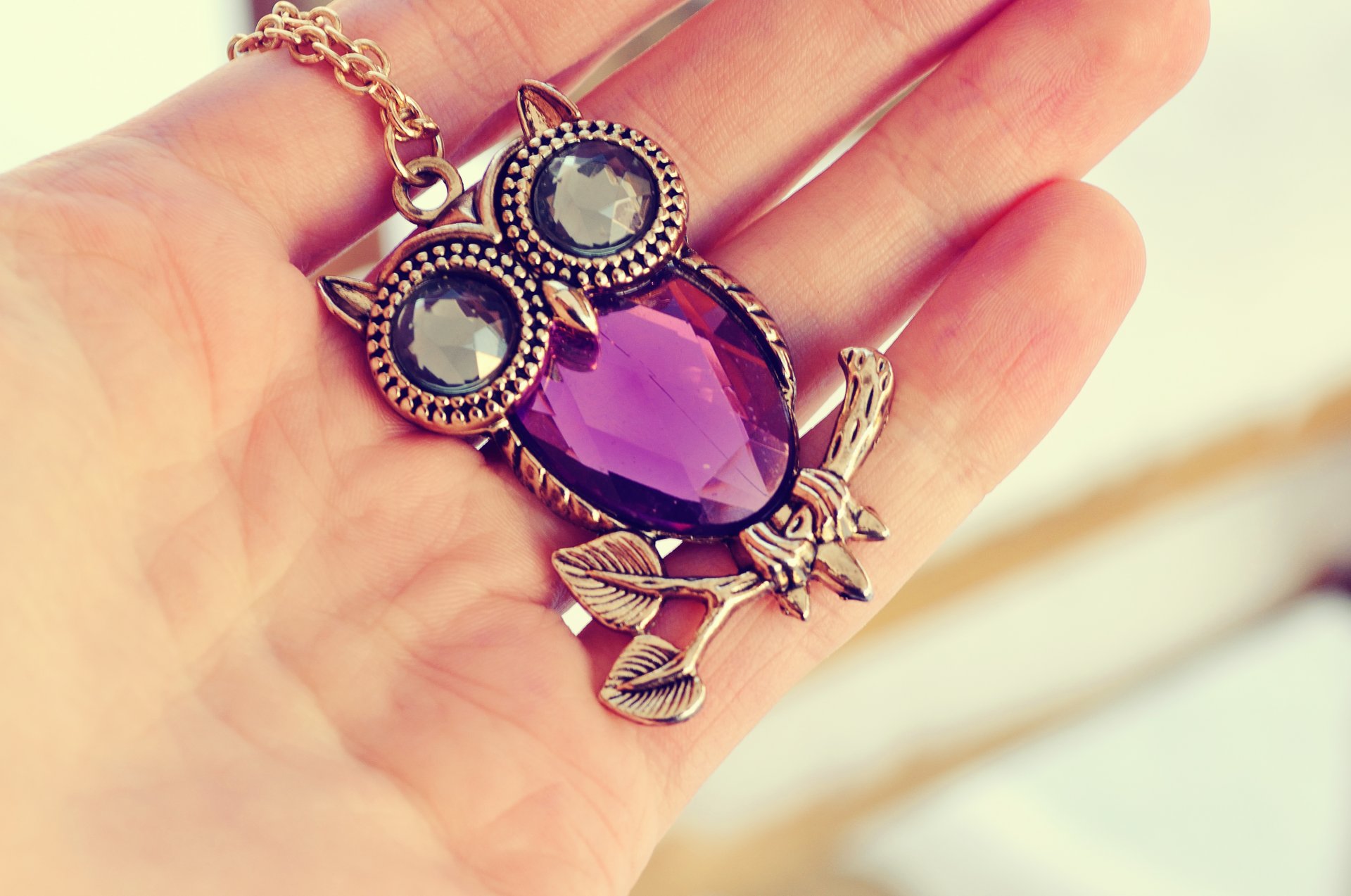 Srebrny wisiorek z ametystem w kształcie sowy