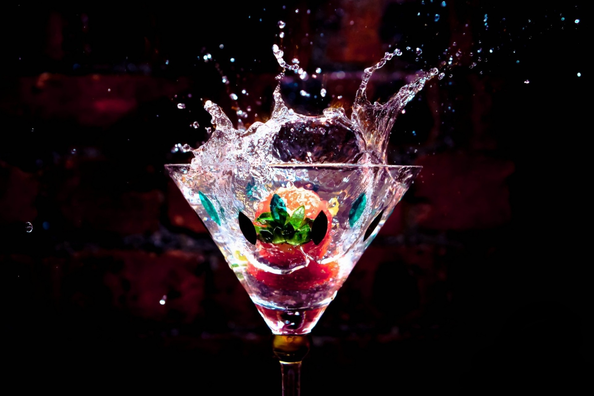 Woda wylewa się z kieliszka do Martini