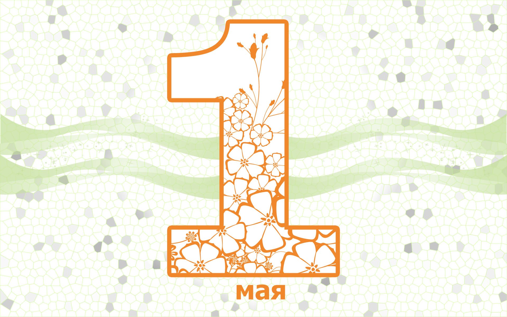 Minimalistyczna pocztówka do 1 maja z numerem jeden z kwiatami w środku