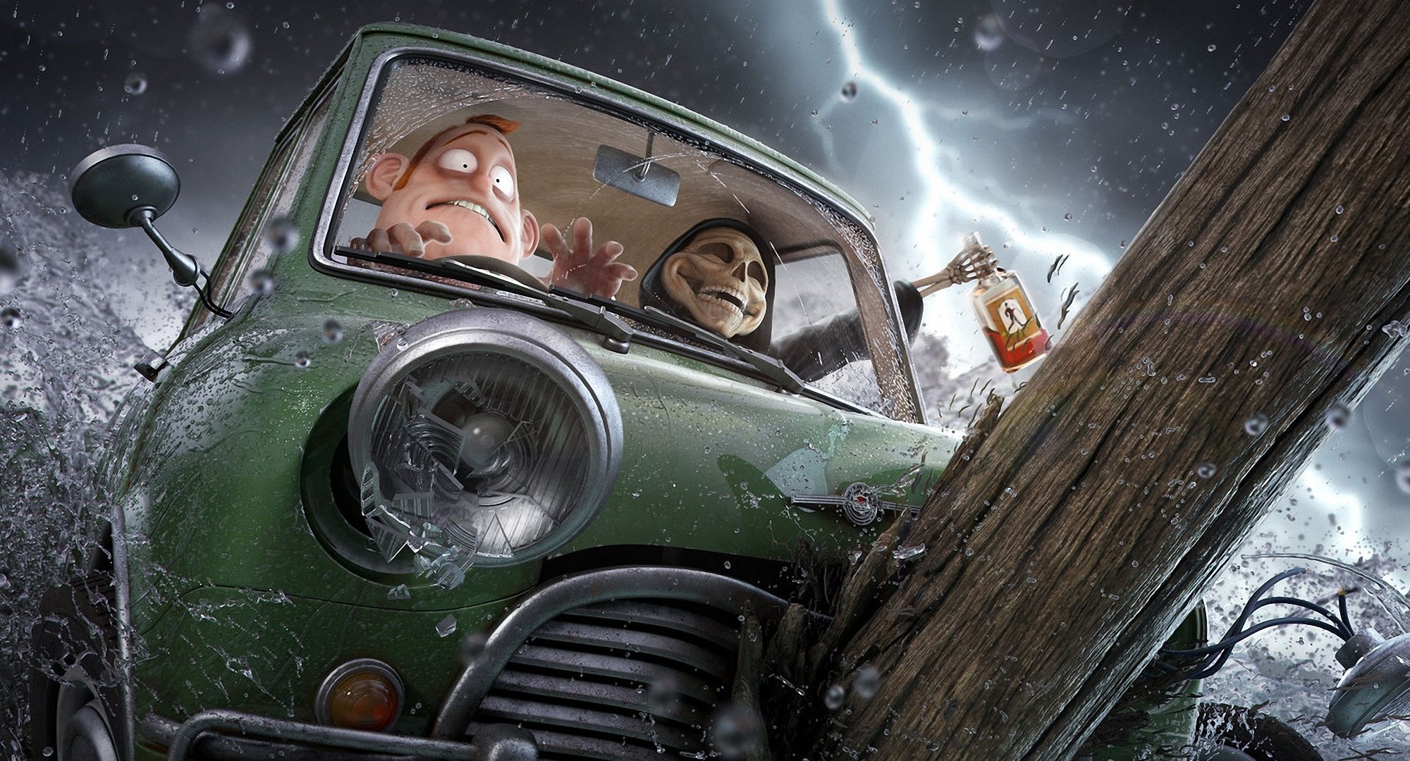 Czarny Samochód Widok Z przodu, włączone reflektory