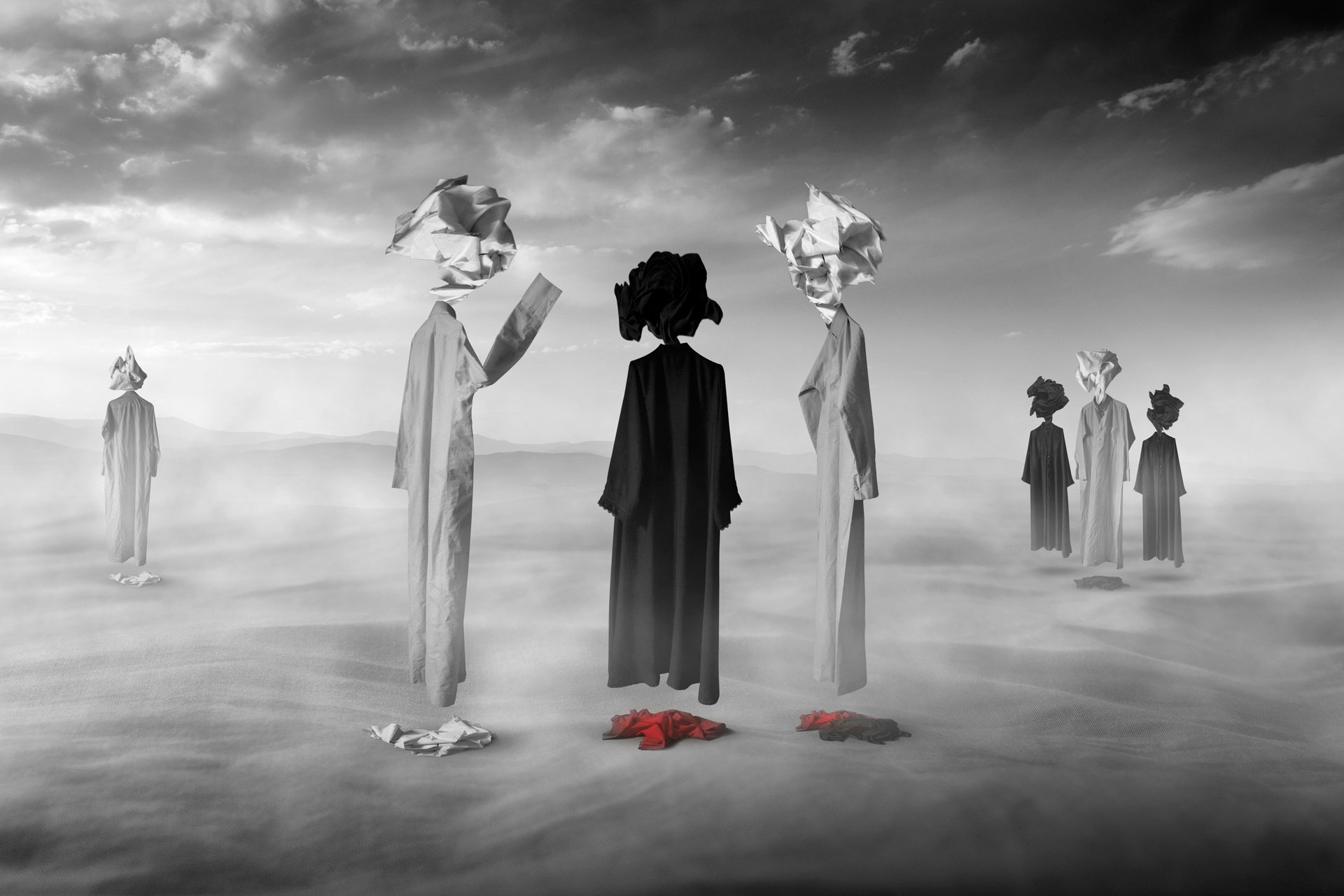 Białe sylwetki mężczyzny i kobiety w sprayu na ciemnym Ion