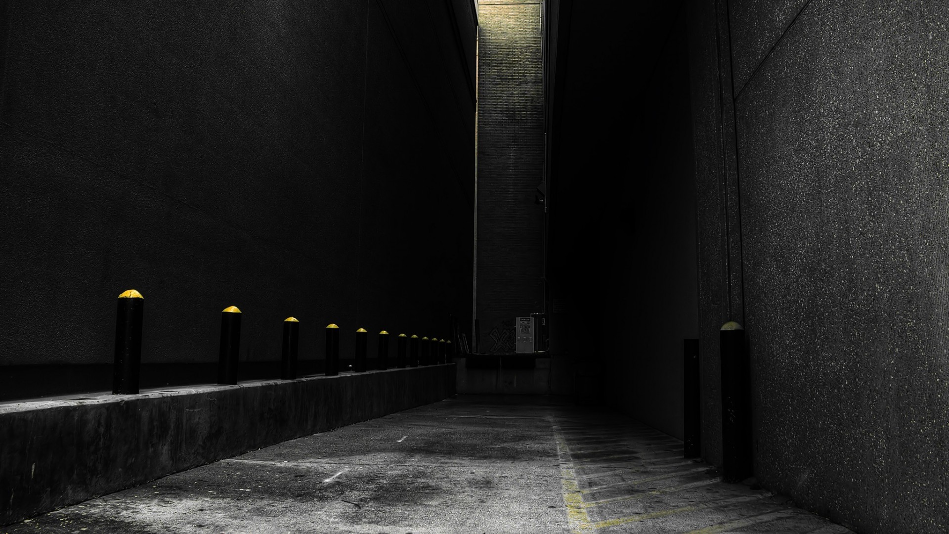 Szara ściana w nocnej alei