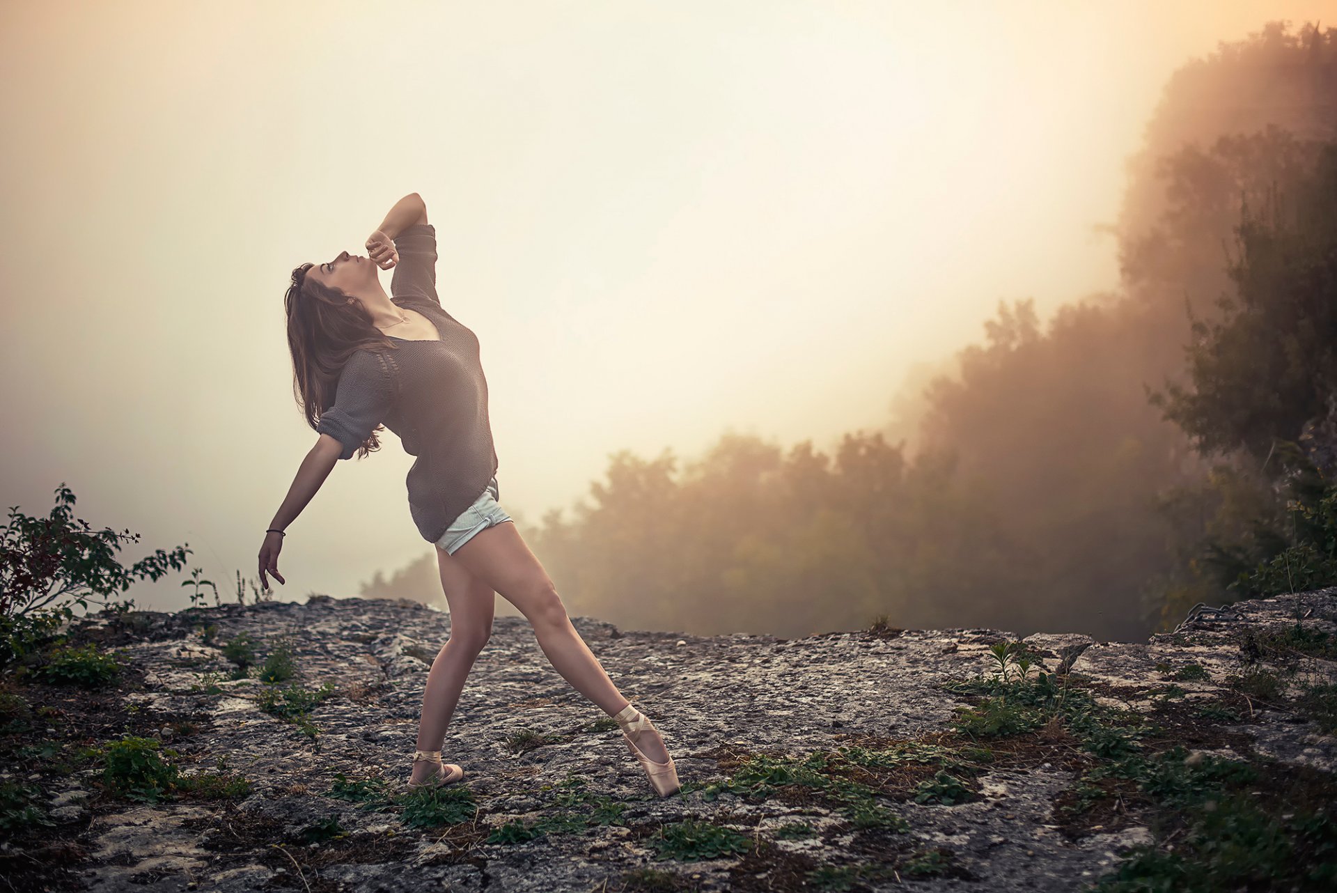 Baletnica na tle miasta Londyn, tańczy piękny taniec