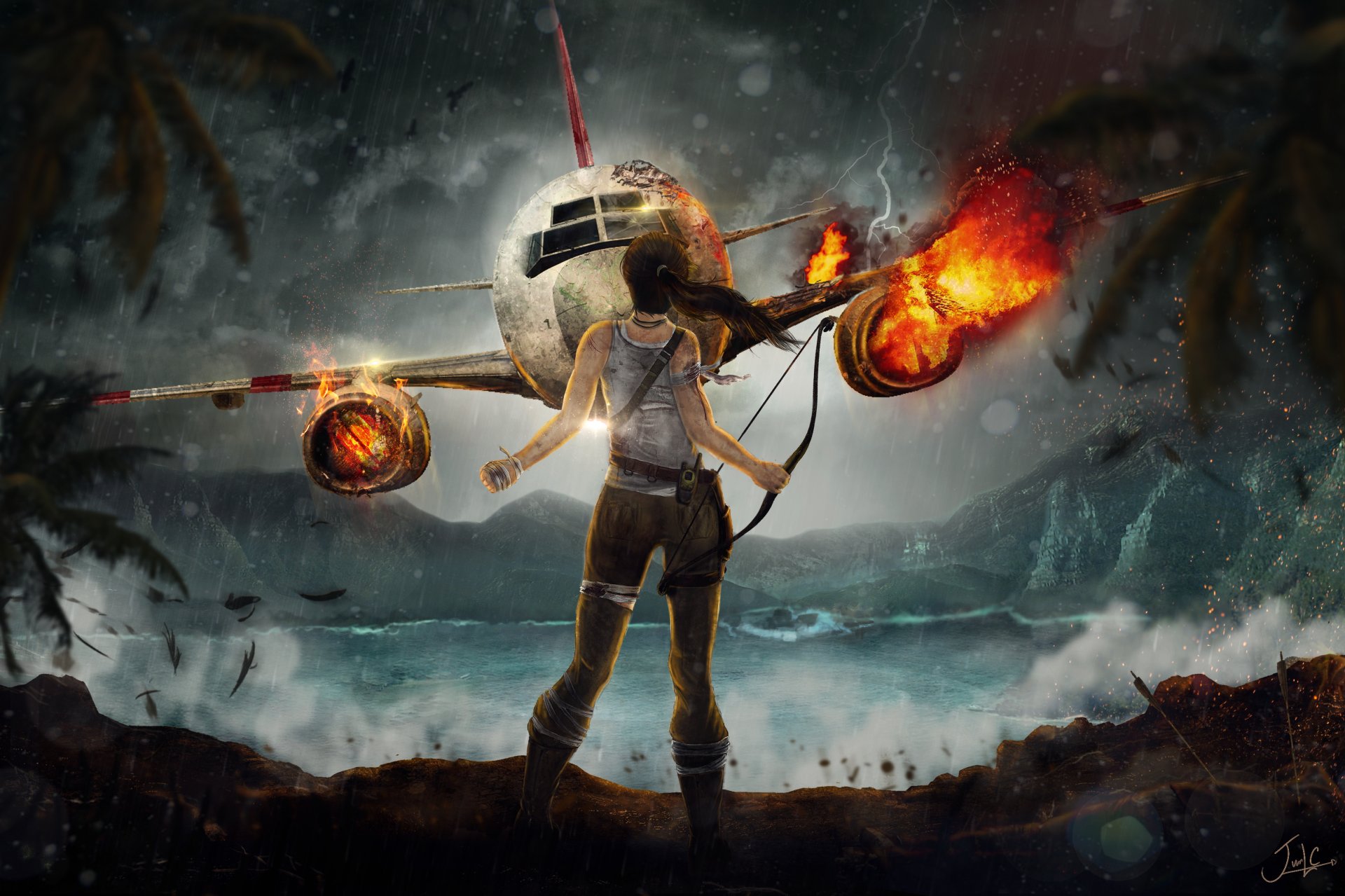 Lara Croft dziewczyna ogień