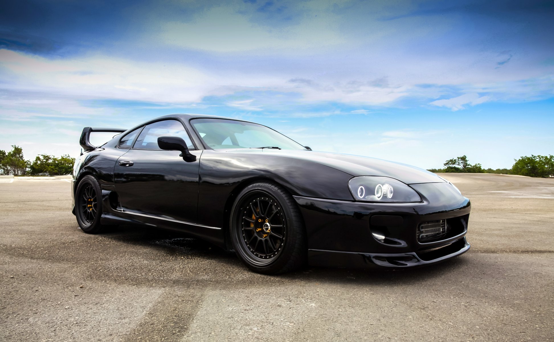 Sexy dziewczyna u czarnego samochodu z otwartymi drzwiami