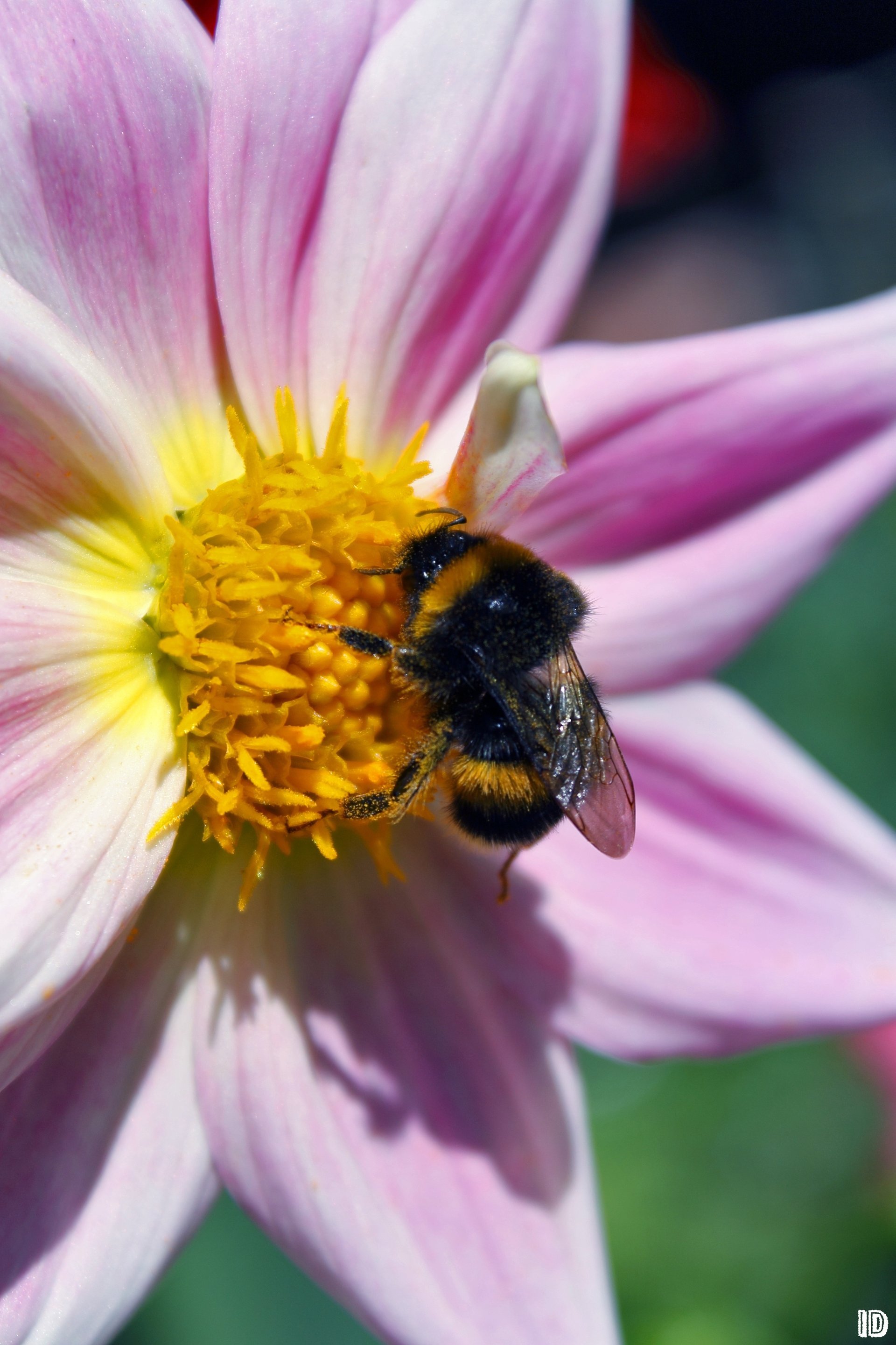 Trzmiel zbiera pyłek z żółtego kwiatu
