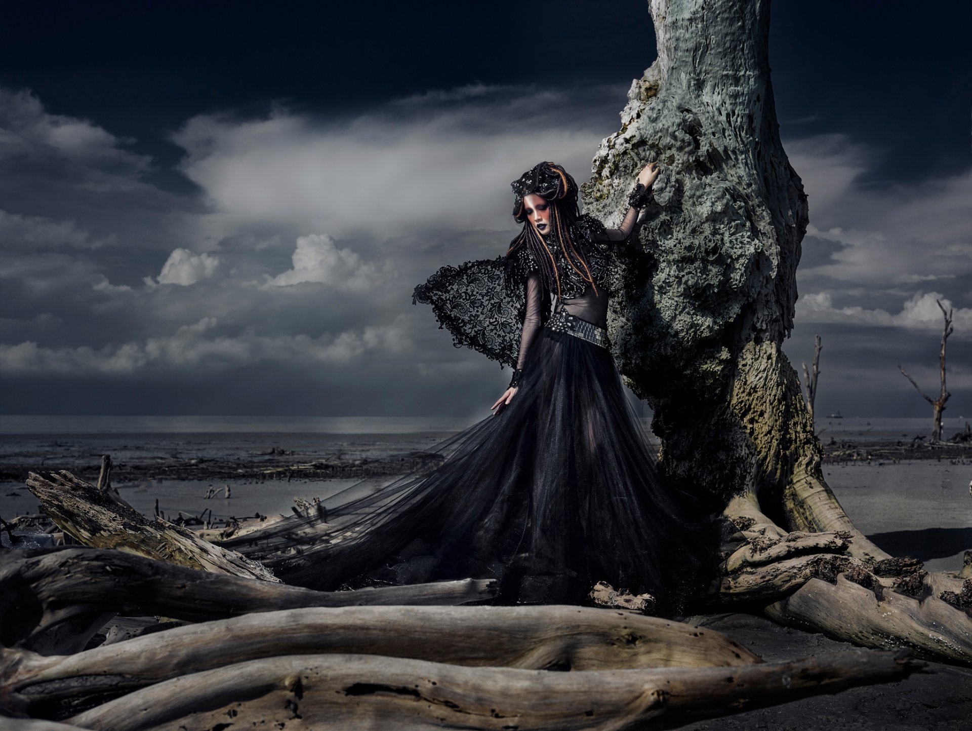 Fantastyczne stworzenie w czerni na czerwonym tle