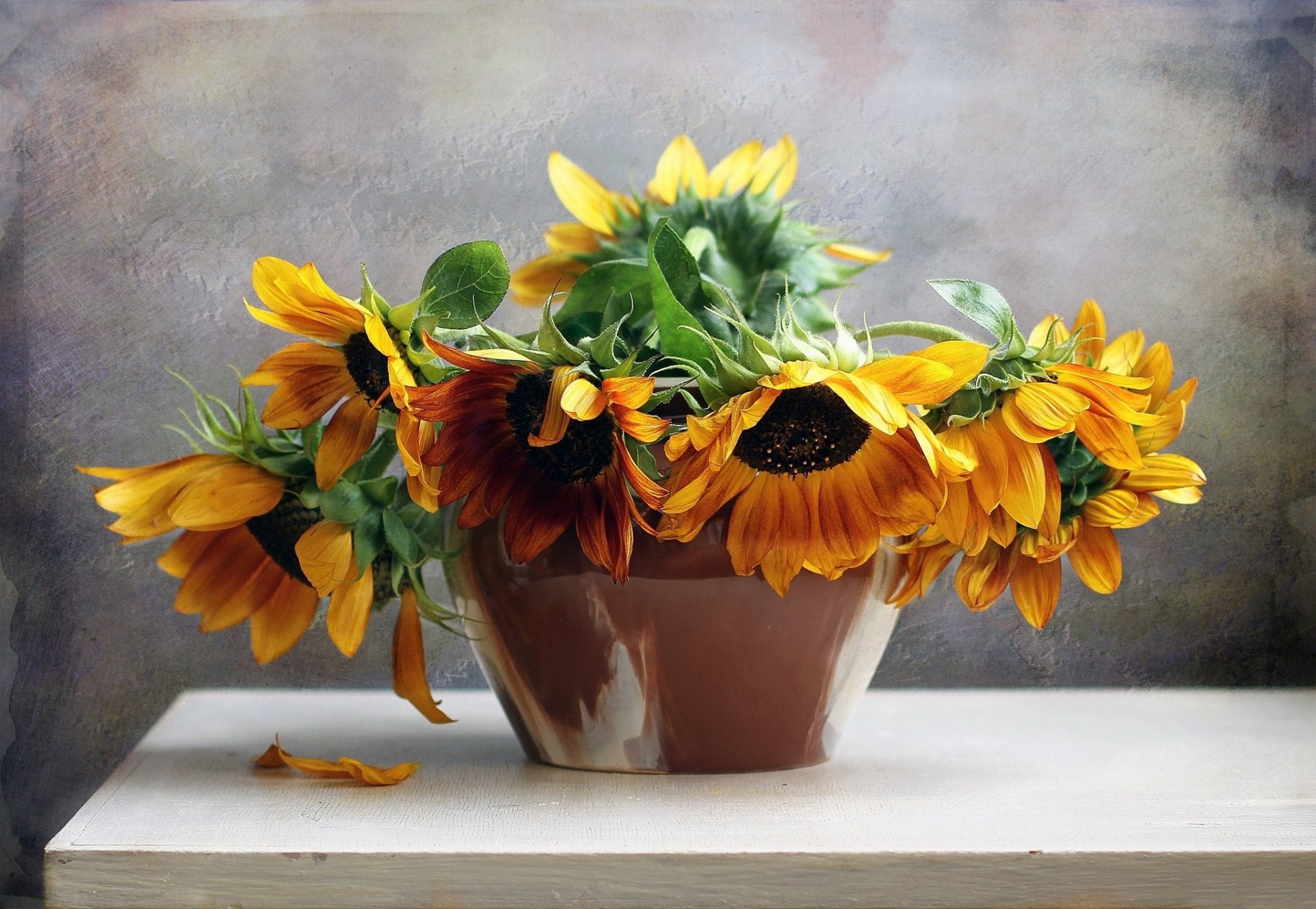 Bukiet słoneczników na stole