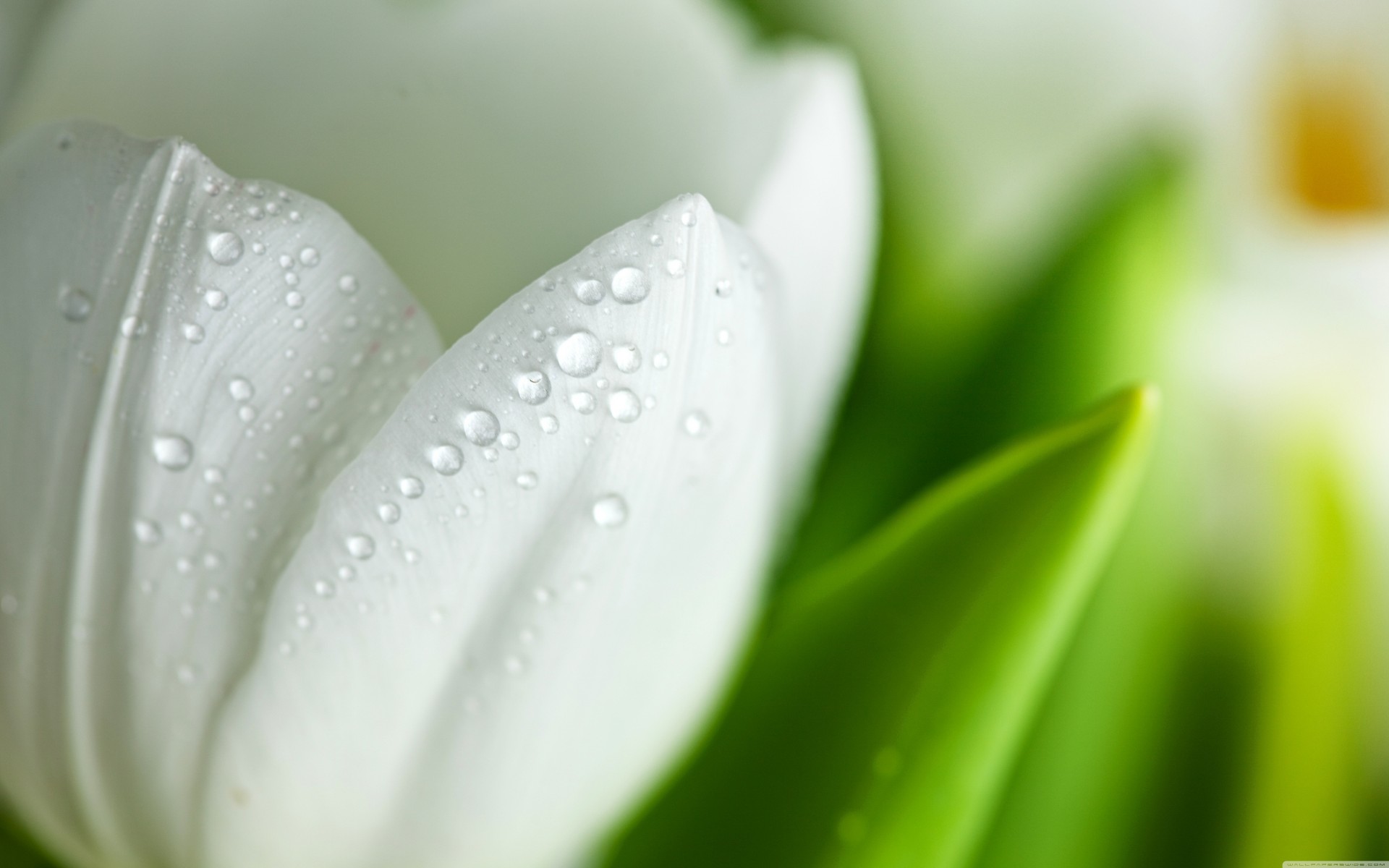 Krople wody na białych płatkach kwiatu