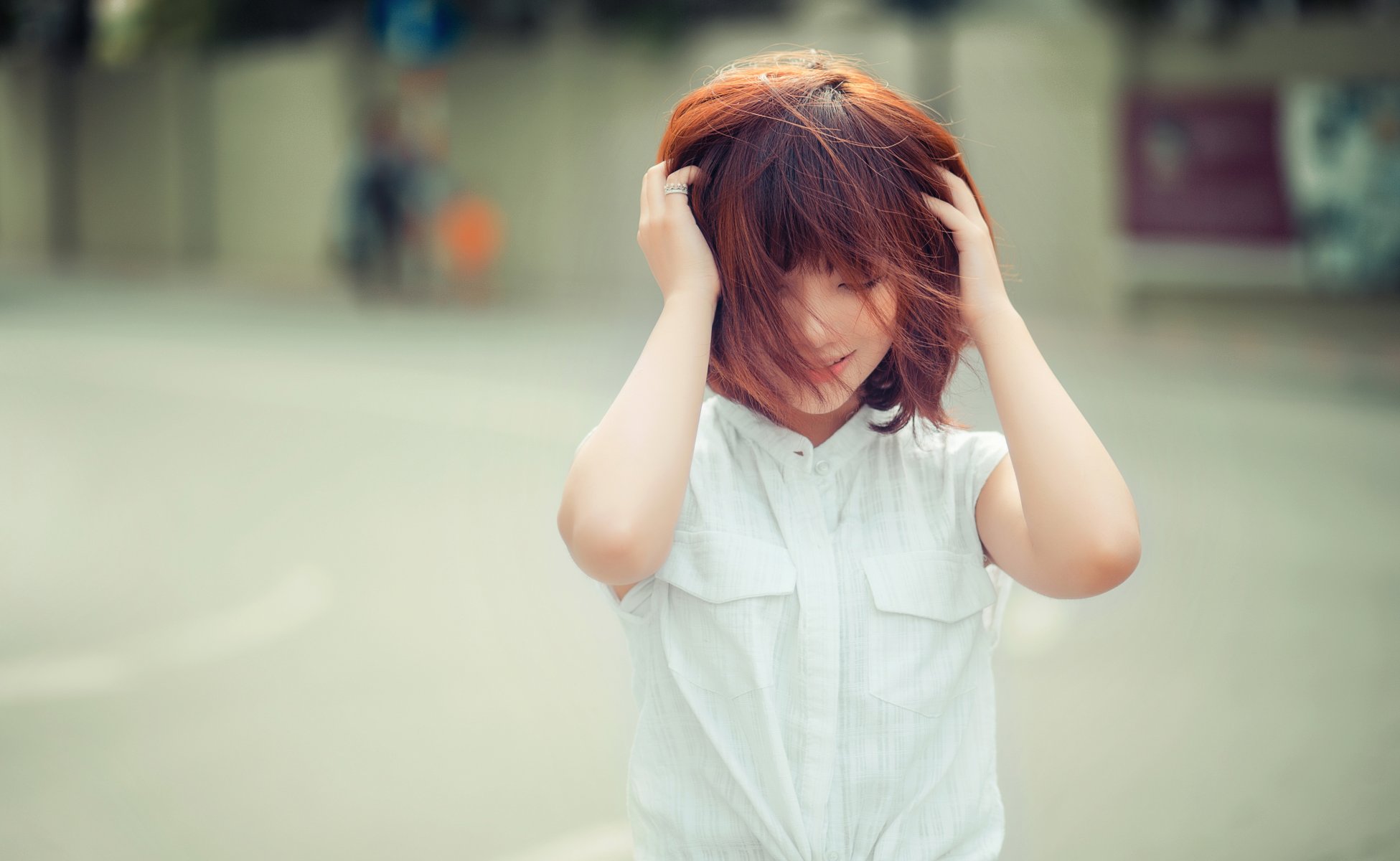 Wschodnia rudowłosa dziewczyna ma szczęśliwy uśmiech