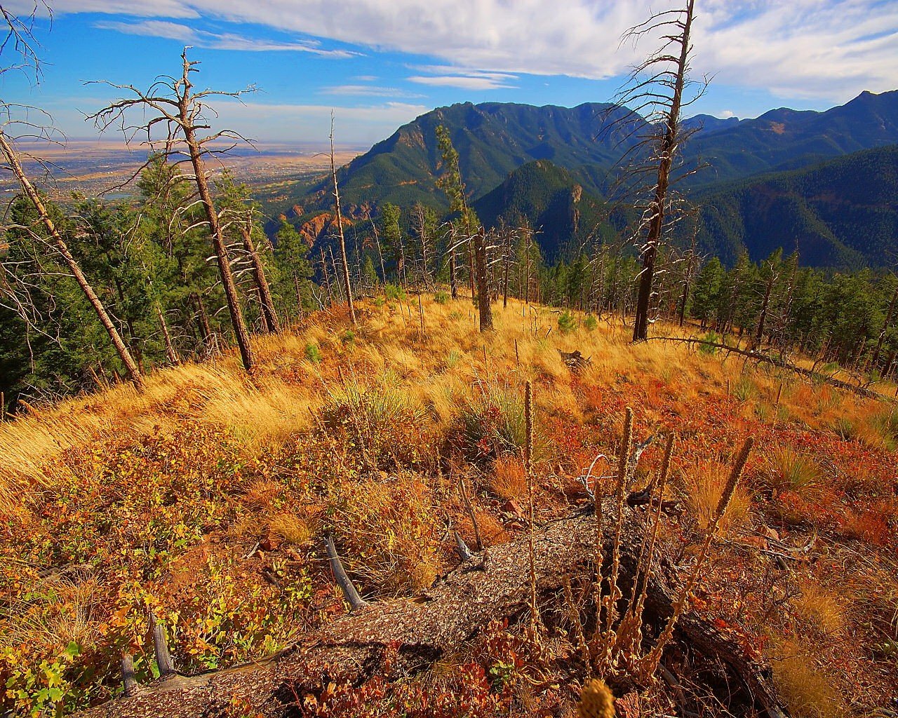 Czerwona trawa i drzewa z czerwonymi liśćmi