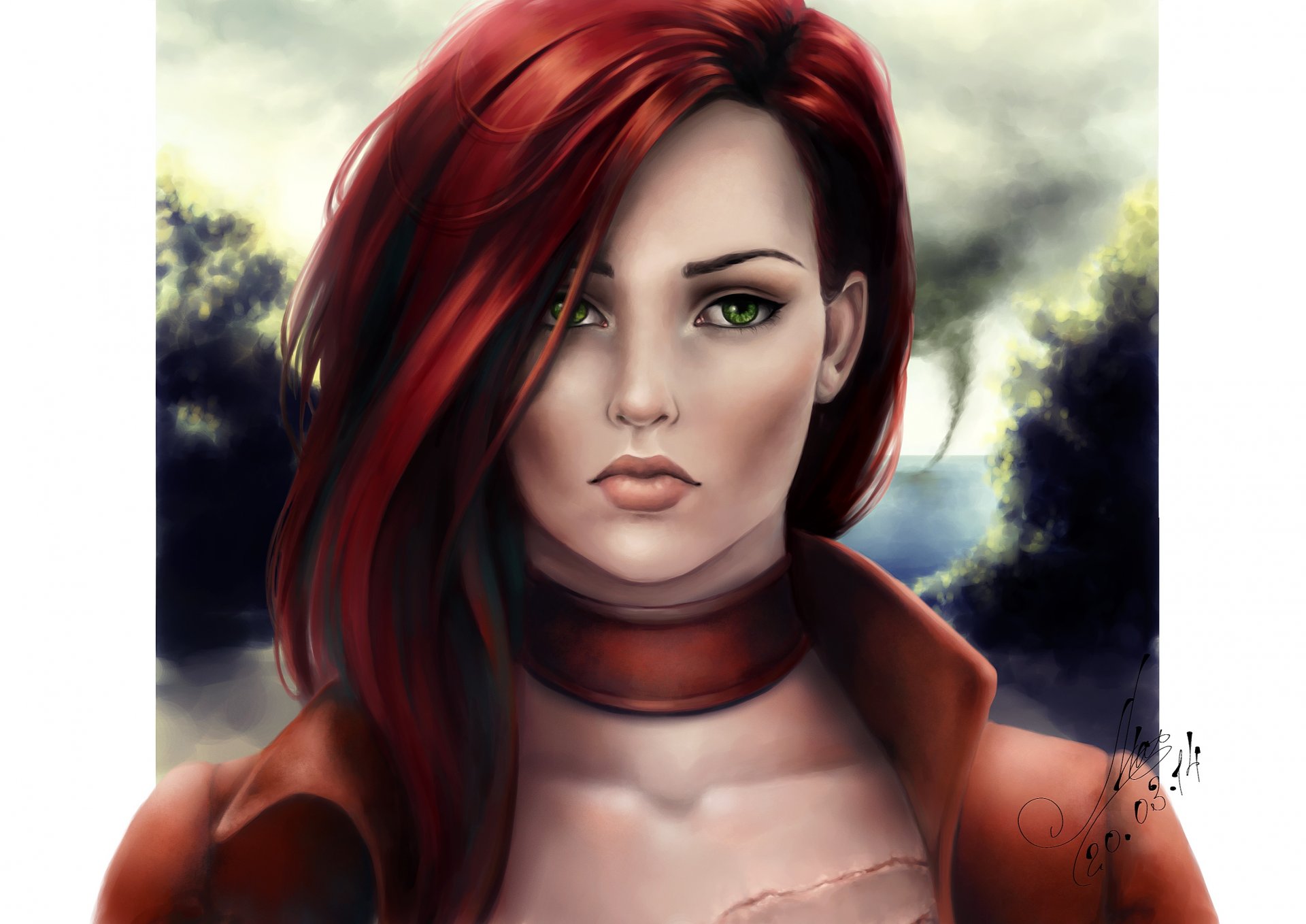 Portret czerwonowłosej dziewczyny o zielonych oczach
